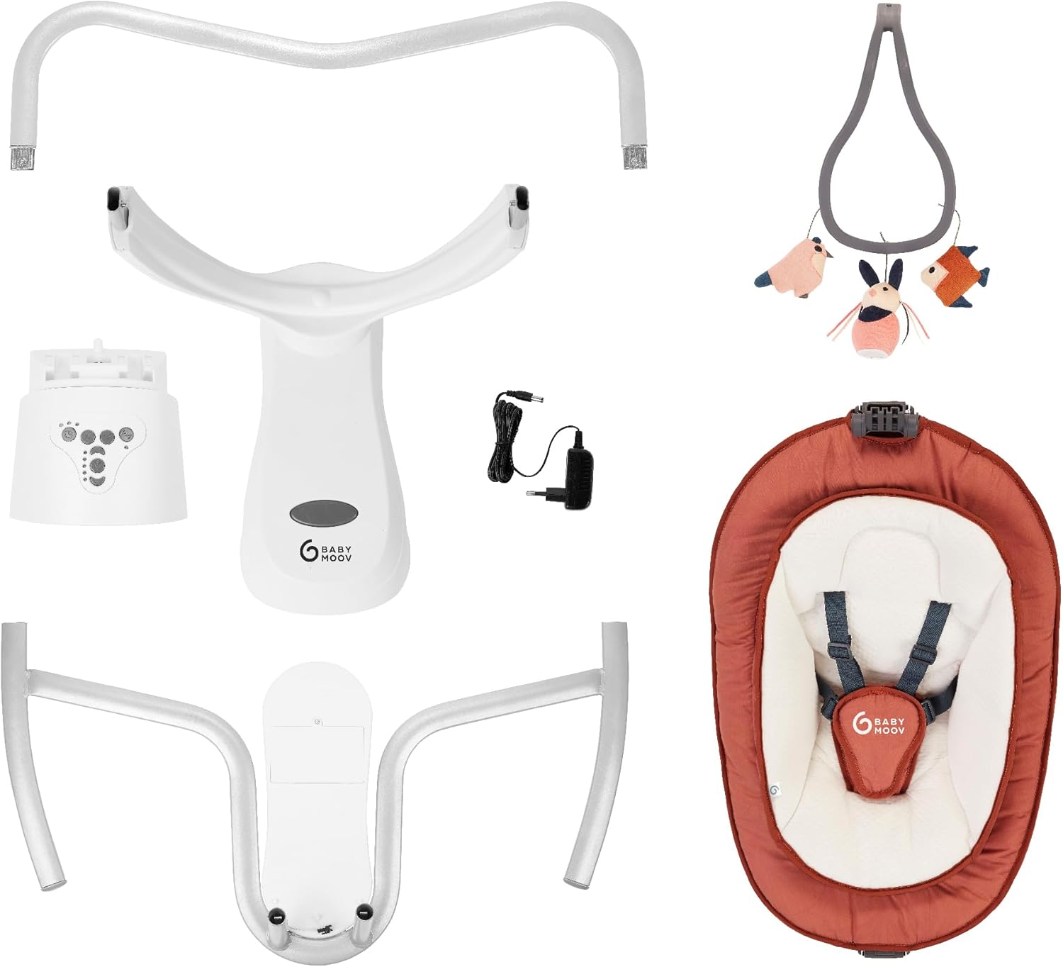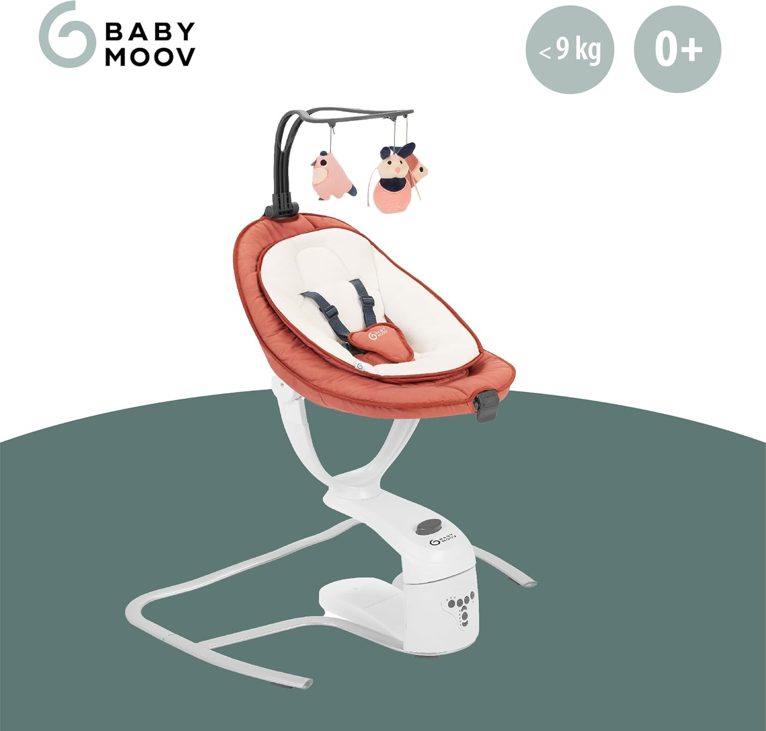 - Rocking time programming: 10, 20 or 30 minutes ; 5 point harness