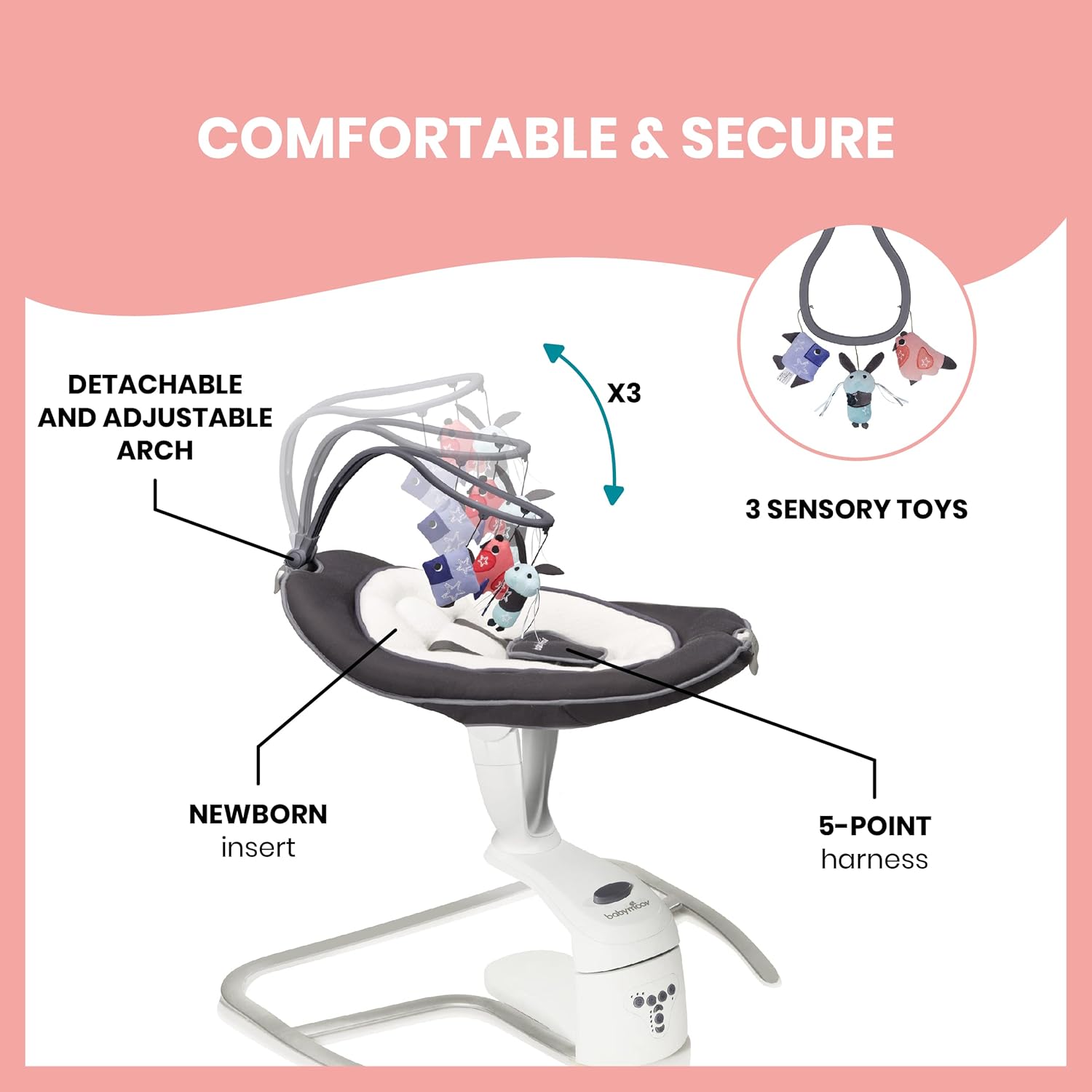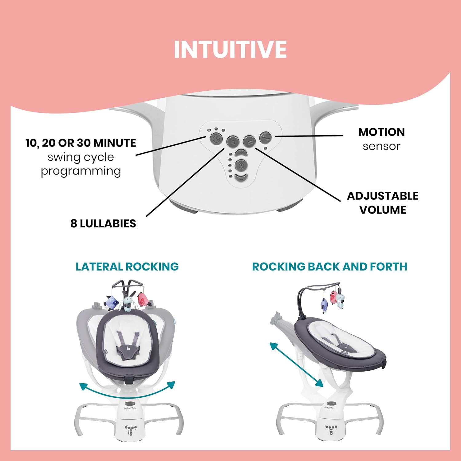 - Motion detector: rocking is triggered by baby’s movement if they wake up
