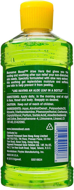 Banana Boat Aloe Vera Gel provides soothing relief for dry skin after a fun day in the sun. Formulated with Aloe Vera, this gel soothes dry, sunburned skin and helps prevent peeling. The cooling Aloe Vera gel nourishes and moisturises dry, rough, or chapped skin, leaving it revitalised and refreshed.