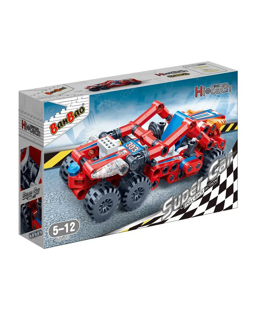 BanBao is an educational building block toy for children. This makes it a favorite of every Super Car fan! This Super Car Hi-Tech playset features a racer named Elliot Description: Build the Elliot with BanBao's building blocks. The Elliot is the most powerful racer in existence, with no fewer than six sturdy wheels and a very robust structure. Once launched, this racer is unstoppable! He can achieve a high speed and has good road holding. This makes it a favorite of every Super Car fan! The Elliot is one of eight cool racers from BanBao's Super Car series, each with unique and fun features. Collect all models and race alone or against your friends! This Super Car Hi-Tech playset features a racer named Elliot.