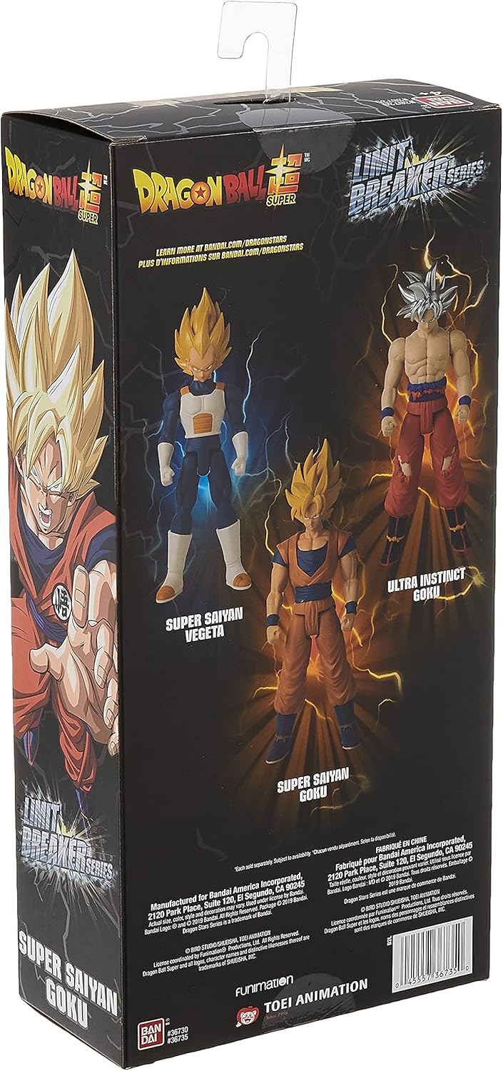 Create your own Dragon Ball world with these awesome Limit Breaker figures. The realism of these 12-inch favorites transport you to the imaginative world of the show you love. You can recreate your favorite scenes in your home or your own backyard. Super durable to survive even the fiercest battles you put them through. With excellent detail and articulationƒ?? this realistic Dragon Ball Super Limit Breaker Super Saiyan Goku 12-Inch Figure is ready to transport you to the imaginative Dragon Ball world you love and help you recreate scenes in your own Dragon Ball world.