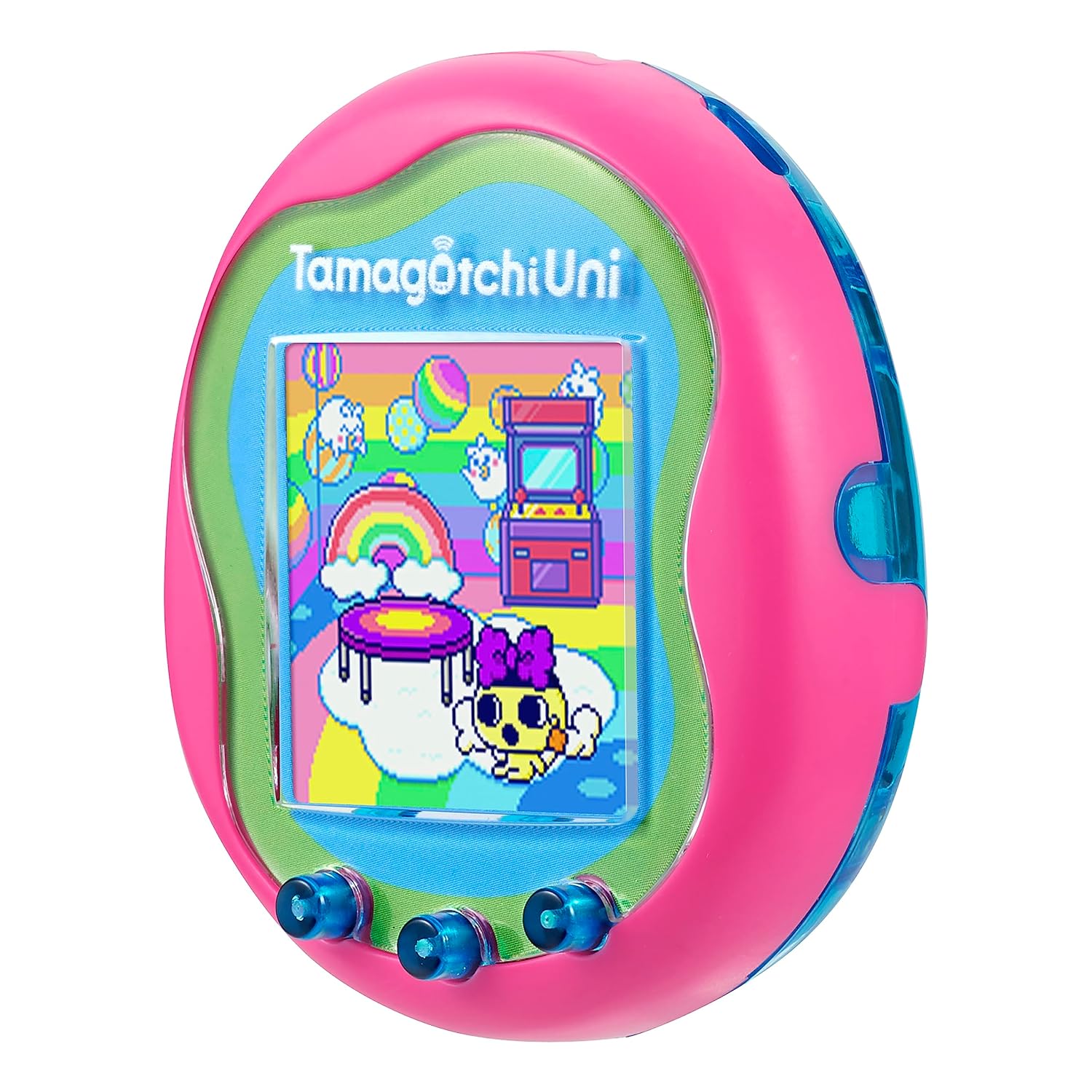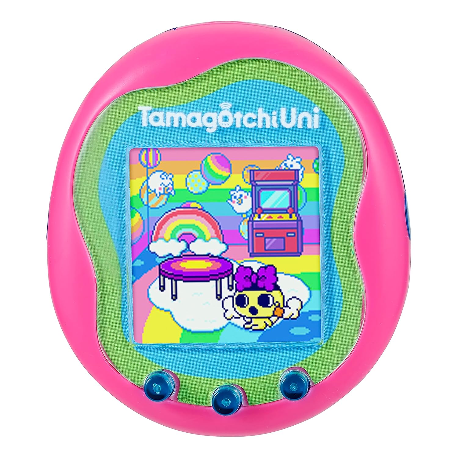 Tamagotchi Uni is the newest generation of your favorite interactive virtual pet with a pink shell and allows fans to connect in a completely new way ƒ?? the Tamaverse! The Tamaverse is the metaverse of the Tamagotchi world allowing fans from around the globe to play together in the Tama Arena, Tama Party, Tama Fashion and Tama Travel! While maintaining its core Tamagotchi attributes of nurturing, communication, portability, and gaming, your virtual pet is better than ever ƒ?? itƒ??s more Unique, United and Universal! Tamagotchi Uni also has various new features allowing fans their own unique experience, including DIY activities, exploring with your character and an in-device social platform. You can connect with your friendƒ??s Tamagotchi Uni to go on playdates, give and receive gifts and even marry! Plus, the Tamagotchi Uni comes with a pink band so you can wear it on your wrist to take it wherever you go and interact with your UniTama in an all-new way! Comes with a rechargeable battery and USB-C cord. Ages 6+