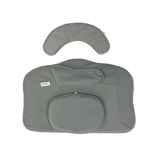The BBLuv Ergo Complete Ergonomic Cushion Set is a patented, all-in-one solution designed to provide optimal comfort and support for both parents and babies. Developed by specialists and parents, this versatile cushion set offers 8 adaptable functions, making it an essential companion for your baby’s first years. The reversible and washable wedge pillow supports the belly during pregnancy and elevates your baby’s head and torso from birth, promoting better digestion and breathing with its 12° tilt. Its unique system of ergonomic, convertible head cushions is crafted to meet the changing needs of a baby’s delicate neck and skull, ensuring proper support during early development. The hypoallergenic buckwheat-filled positioning cushion allows customized support for the baby’s skull, back, or legs, providing unmatched comfort and safety. Soft, breathable, and easy to maintain, the BBLuv Ergo cushion set is perfect for evolving with your baby’s needs, offering unparalleled functionality and care.