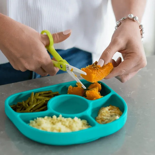 No more mess and no more struggle cutting food while holding your child! Kut simplifies mealtime by enabling you to cut up your child’s food into appropriate bite-size portions at home or on the go. They can safely cut through poultry, meat, pasta, fruits and vegetables.