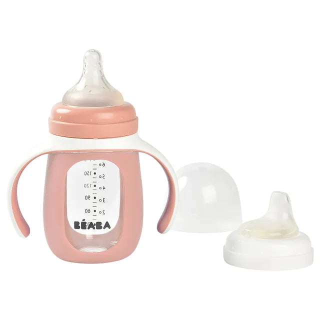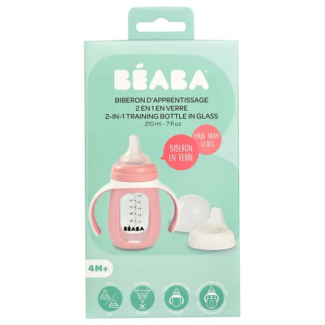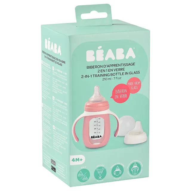 Beaba 2-in-1 Learning Bottle 210ml + Silicone Sleeve - Old Pink