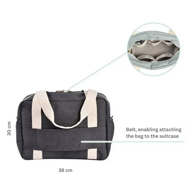 - PRACTICAL AND VERSATILE: multiple carries (by hand, on the shoulder, on a suitcase, on a stroller) with trolley-suitcase slide and integrated stroller attachment system