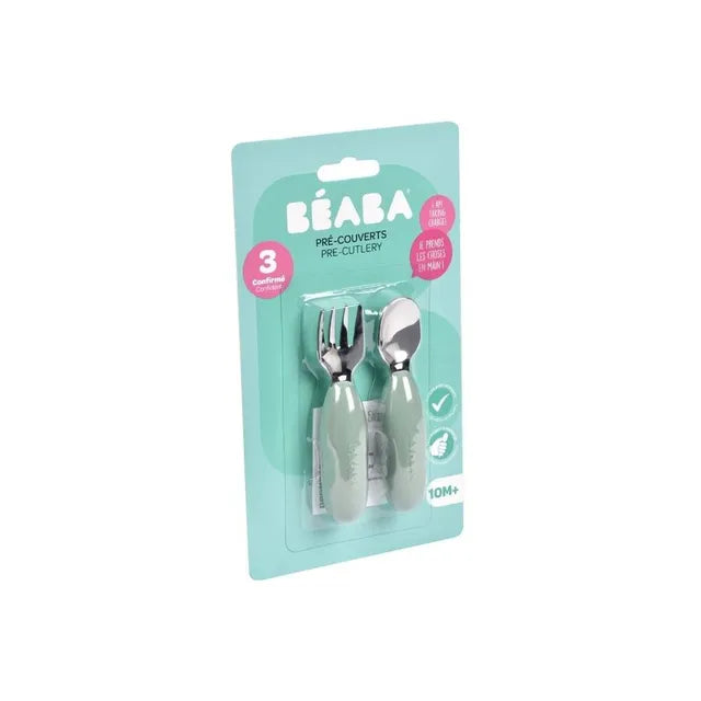 Beaba Stainless Steel Pre-Cutlery Pack of 2 - Sage Green