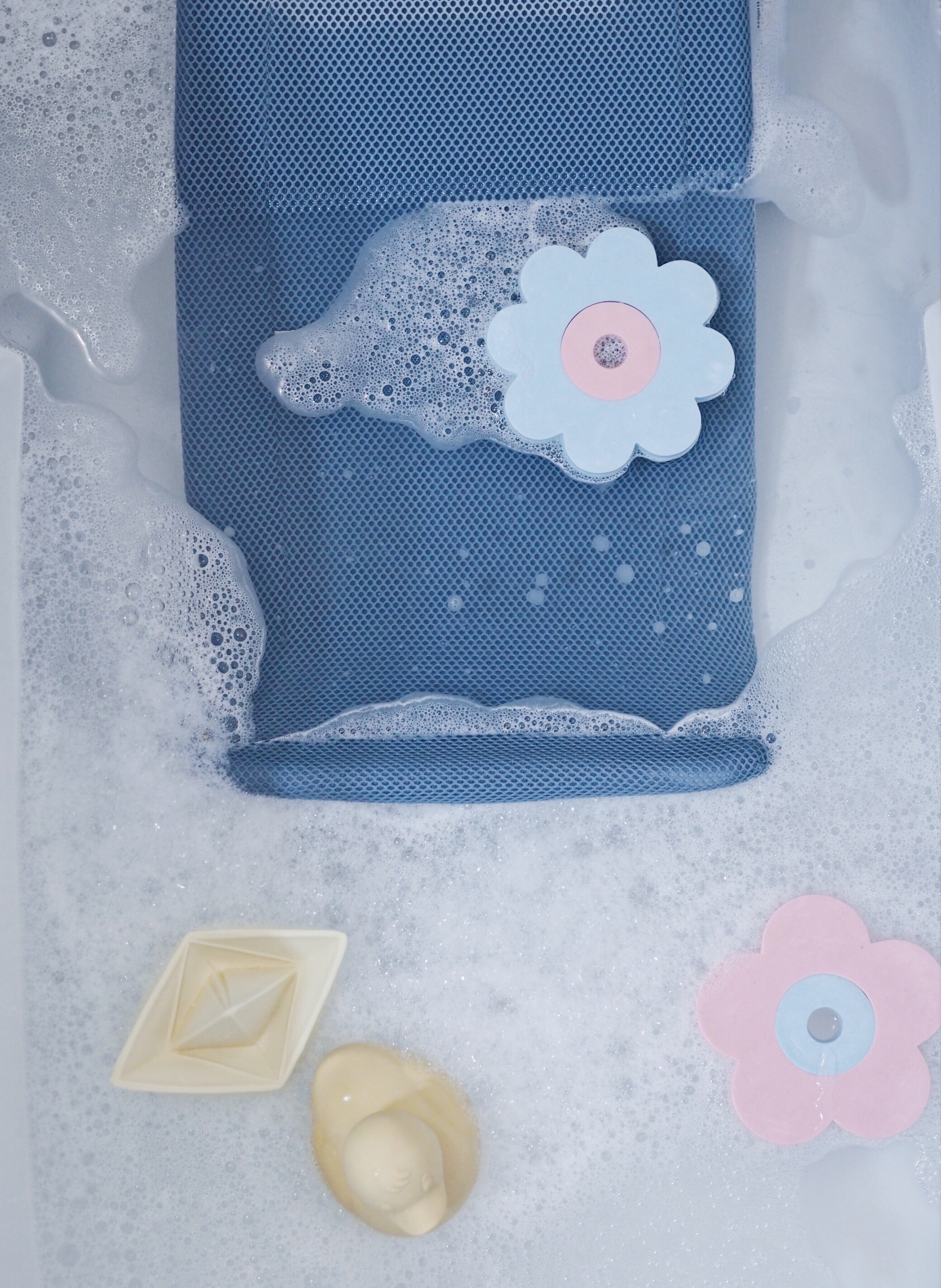 Beaba Transatdo baby bath seat in hammock-style mesh fabric. Comfortable and lightweight. Quick drying