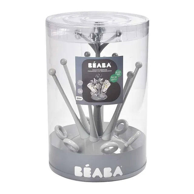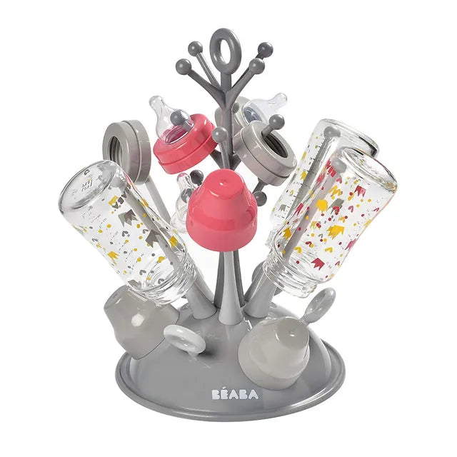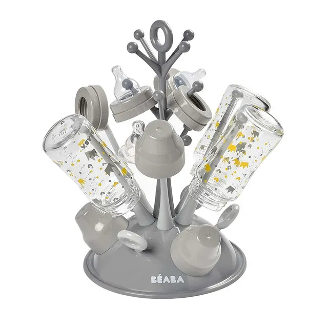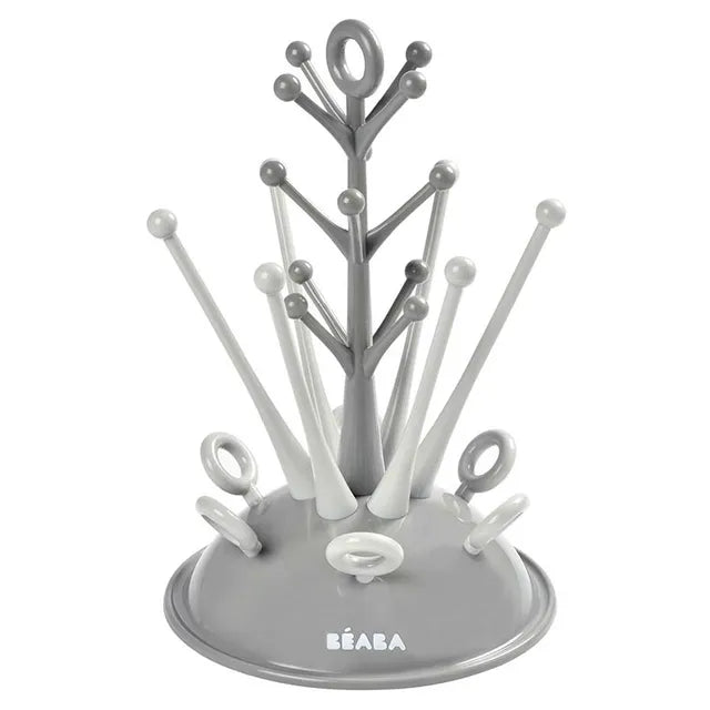 Beaba bottle rack in grey for drying baby bottles and accessories.