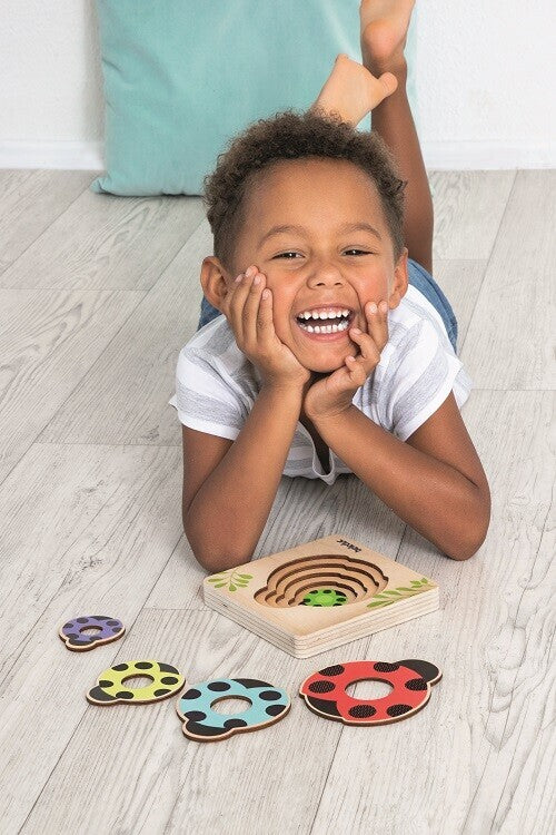 Crafted from sturdy, easy-to-grasp wooden pieces, this puzzle promotes early motor skills development, concentration, and inner peace. Its vibrant colors help children with shape and color recognition, making it a perfect Montessori-style toy for toddlers and babies.