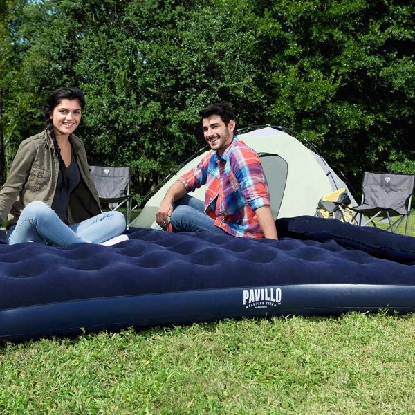 For your outdoor adventures, a Pavillo Aeroluxe Airbed is the perfect solution to provide a refreshing night sleep due to its durability and comfort. In addition to the queen sized airbed, this package includes a hand pump and 2 pillows for your comfort. Uniquely designed for the outdoors, this airbed can withstand almost any terrain you wish to explore. With features such as a comfortable sleeping surface and a sturdy coil beam construction, a great night sleep is in the air with the Aeroluxe Airbed. When you are done with the airbed, the interlocking quick release valve allows for easy deflation.
