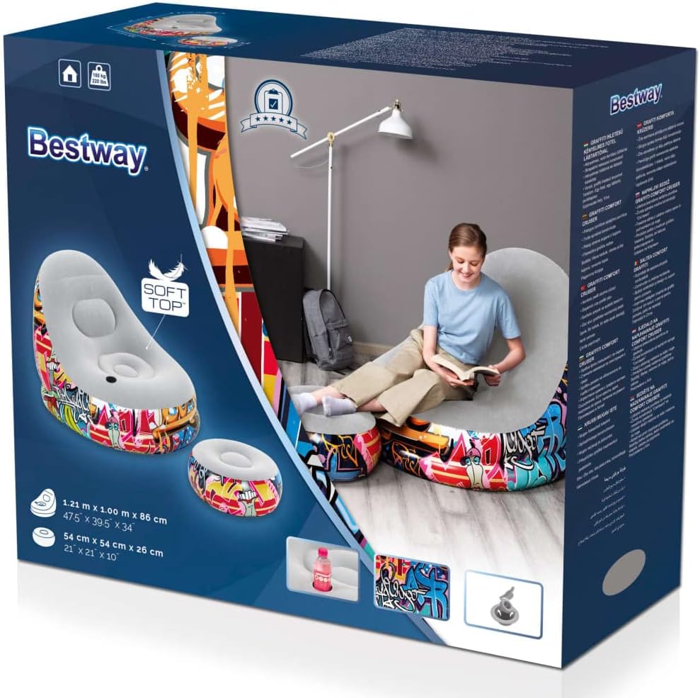 A comfortable, inflatable lounger with a funky twist, the Bestway Graffiti Comfort Cruiser is the perfect addition to any living room, dorm, patio or stored for quick and easy backup seating for your next party.