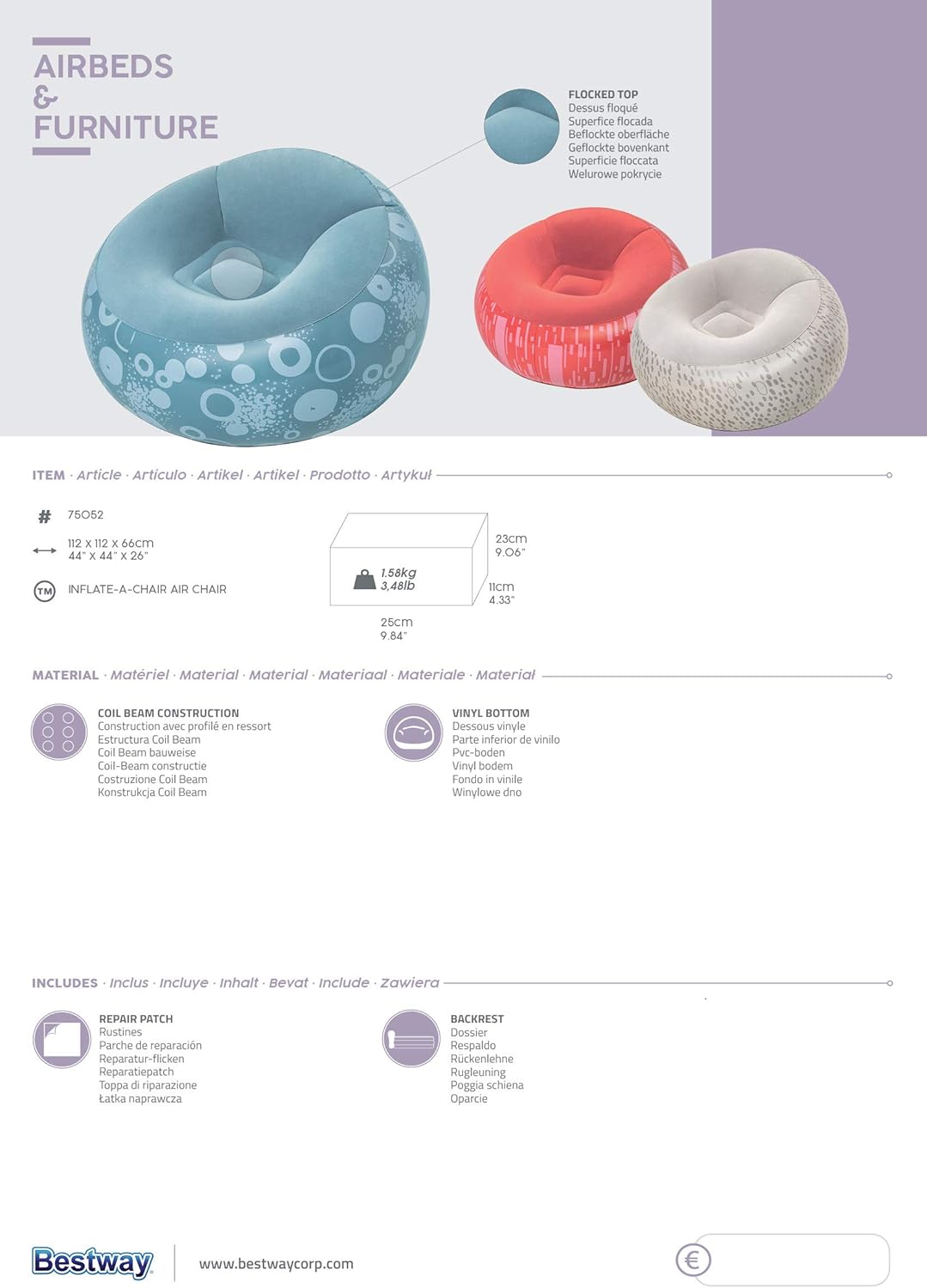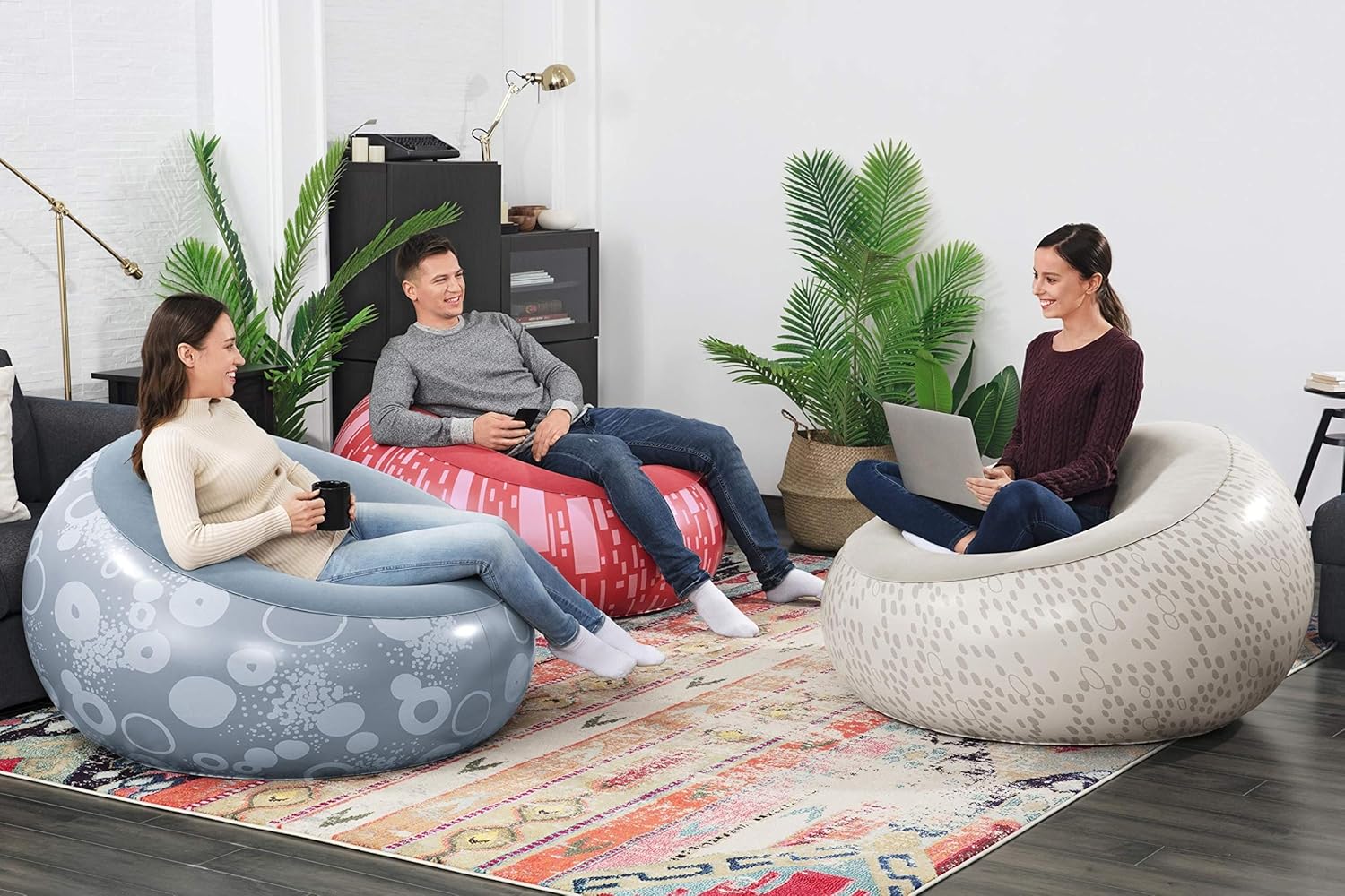 This inflatable chair is easy to set up, requires minimal storage and above all, is FUN!!! Perfect for when guests come over, to fill up a vacant room, to watch the big game or as dorm room furniture. Suitable for indoor and outdoor use with Free manual Pump.