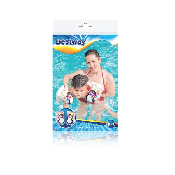 Inflatable swimming sleeves in two colorful patterns are a perfect gift for children. Perfect for both going to the sea and playing in the backyard pool. They are properly profiled , and their construction consists of two independent cushions. Thanks to this, the sleeves do not restrict the childs movements and allow him or her to play freely. Bestway inflatable sleeves are made of high quality vinyl . This material is durable and does not wear off even during the most boisterous games. It is also a delicate and pleasant to the touch material that will not hurt the babys sensitive skin.