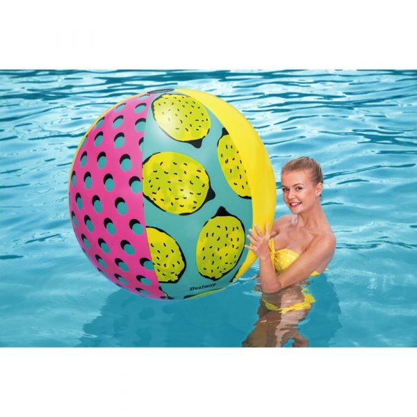 The Bestway Retro Fashion Giant Beach Ball is great for pool parties, beach outings and lawn games. Say goodbye to boring, old beach balls and hello to this 1.22 m (48 in.) ball with 90ï؟½s themed graphics, guaranteed to bring the fun to every pool party. Great for kids or adults, this giant beach ball is the perfect accessory for your next day spent in the sun. The beach ball is easy to inflate and deflate which makes it ideal for transporting. Get your pool day on with the Retro Fashion Giant Beach Ball.