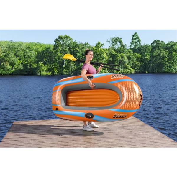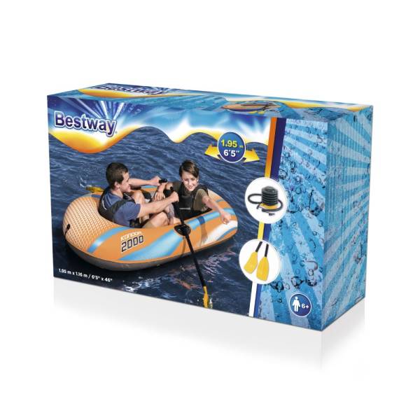 The Bestway® Kondor™ 2000 Raft set is a blast for families who want to explore the water together! Perfect for one child and one adult, it's easy to inflate so you can spend more time on fun and less time on setup. The raft features a comfortable, inflatable floor that's perfectly cushioned for added relaxation.