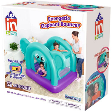 Kids will jump for joy when they see the Up In & Over Energetic Elephant Bouncer set up and ready for play time all year round! Kids will love the fun elephant graphics, while parents are sure to love the built-in pump that will inflate and deflate this bouncer in just 3 minutes at the touch of a button. This bouncer is super simple to inflate, deflate and store. The Energetic Elephant Bouncer features mesh sidewalls, so you’ll be able to easily keep an eye on the kids as they bounce the day awa