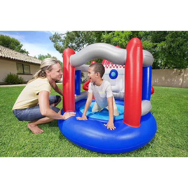 Kids can bounce all the way to the moon with this up in & over rocket bouncer! This bouncer provides a safe, fun place for kids to play and stay active for hours. It's the perfect size for kids to jump, both indoors and outdoors. While kids will go crazy for the fun rocket design, parents will love the inflatable guard rails for added safety. Plus, the rocket bouncer is fast and easy to set up, while still being lightweight and portable. Let your little astronaut's imagination run wild as they jump and play in the up in & over rocket bouncer!