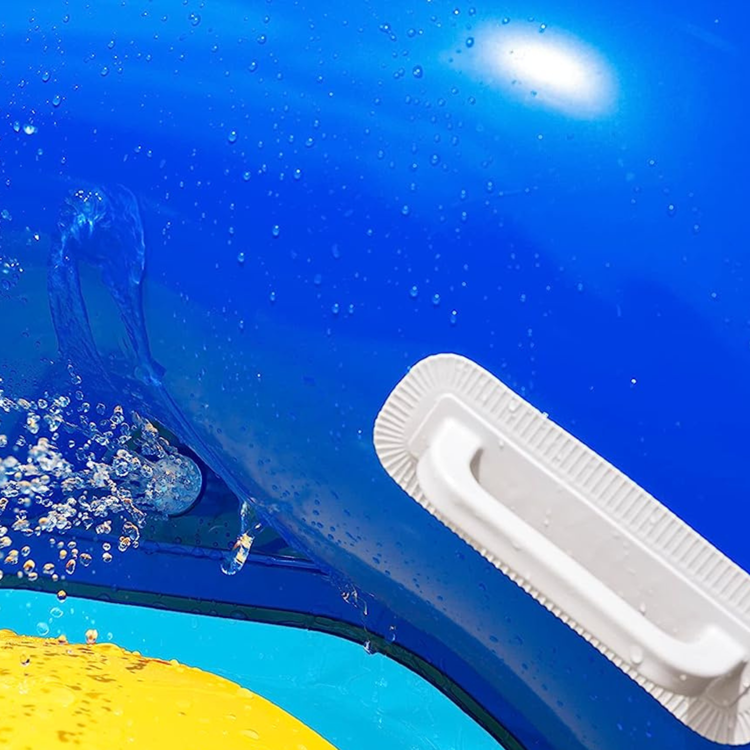 - Simply use the included adaptor to attach the slide to a garden hose and the built-in sprinklers will keep the slide slippery for slick slides into the water.