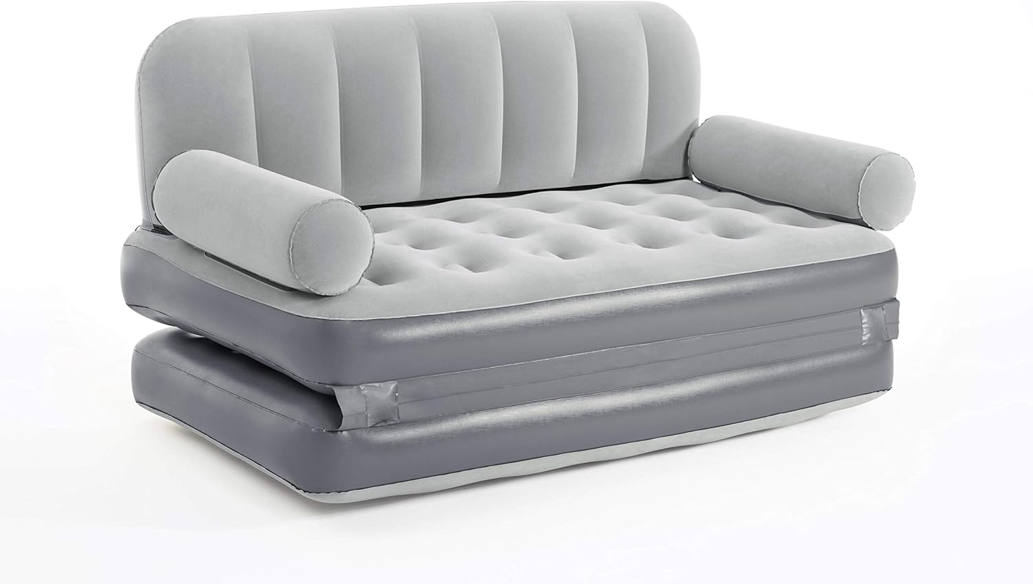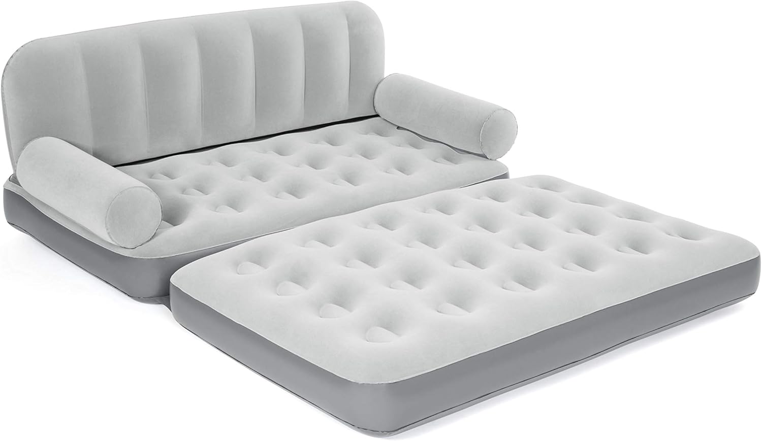 The Bestway Multi-Max Air Couch is an inflatable couch that can be used as a couch or a bed. It's transportable and it inflates in just a few minutes so you can start relaxing on it right away. When it's in couch mode, the Multi-Max Couch has comfortable back and armrests to lean back on while you watch a movie or play video games. The cushions fold out to reveal the mattress so it can be used as a bed. It's made with coil beam construction, so you know it's durable and long-lasting. Perfect for traveling, an extra bed in the house, or seating for your game room, enjoy the comfort of the Multi-Max Air Couch.