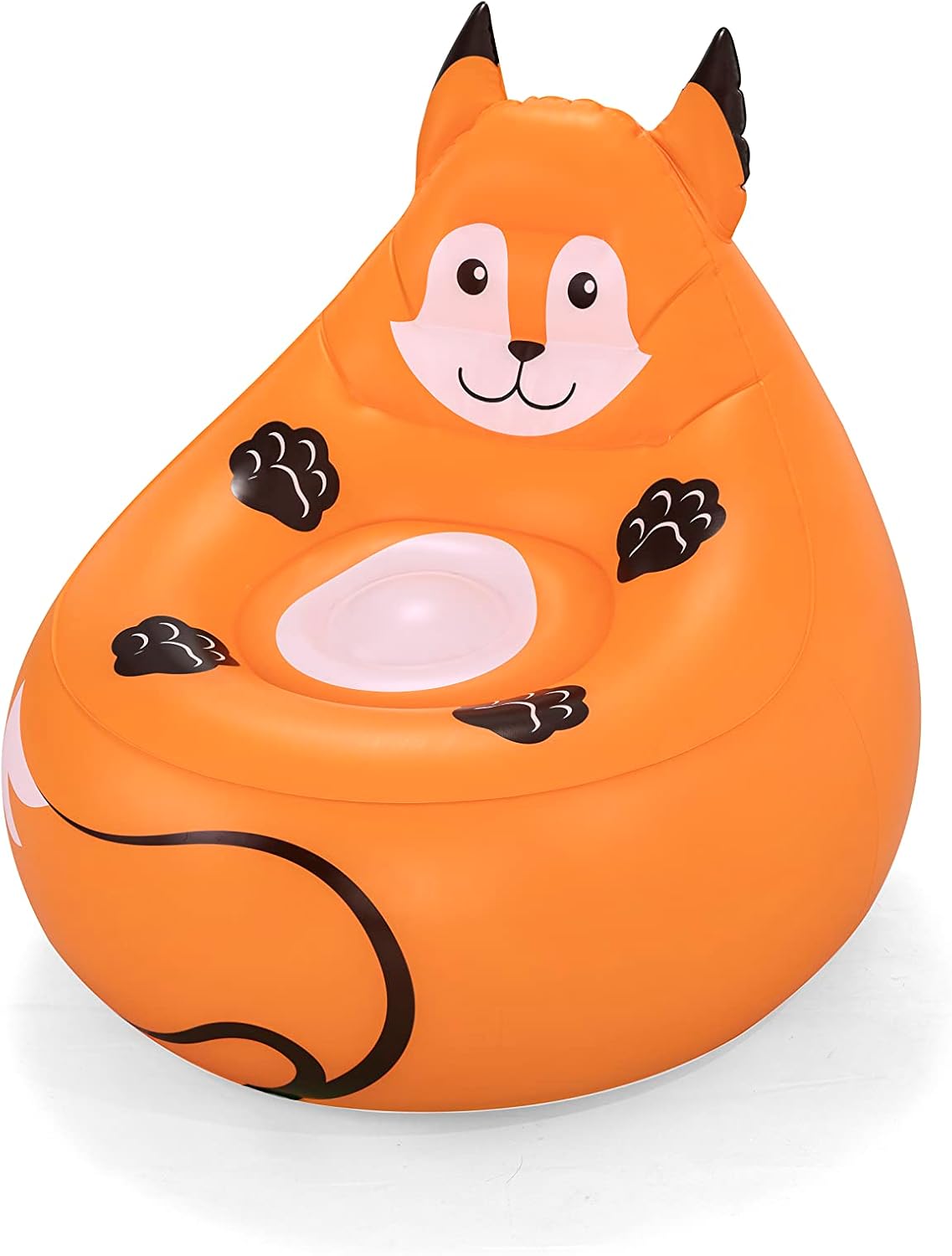 Create an imaginative reading nook or include it in your family space for movie time.,You can easily deflate the chair when youre done for a flexible seating option anytime you want or need it.,Bring your animal friend on-the-go the next time youre going to spend time with family or friends so your child has a fun and cozy seat!,Friendly animal graphic.