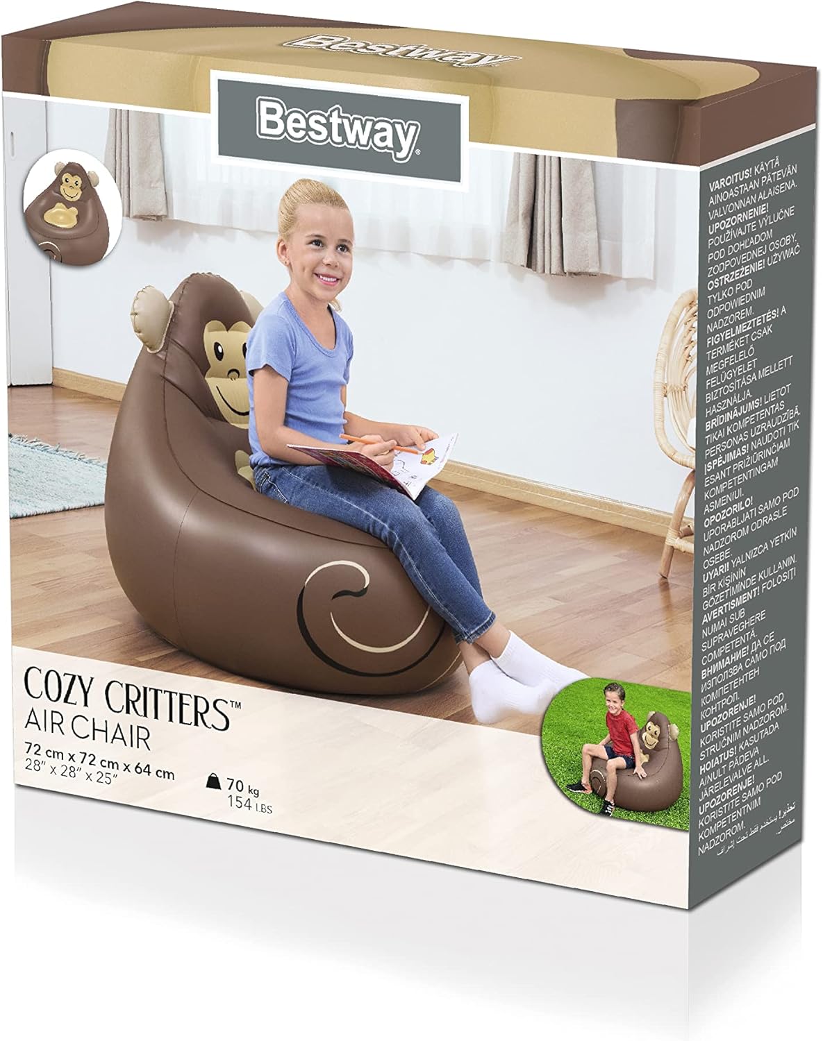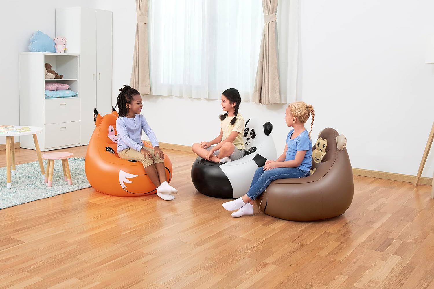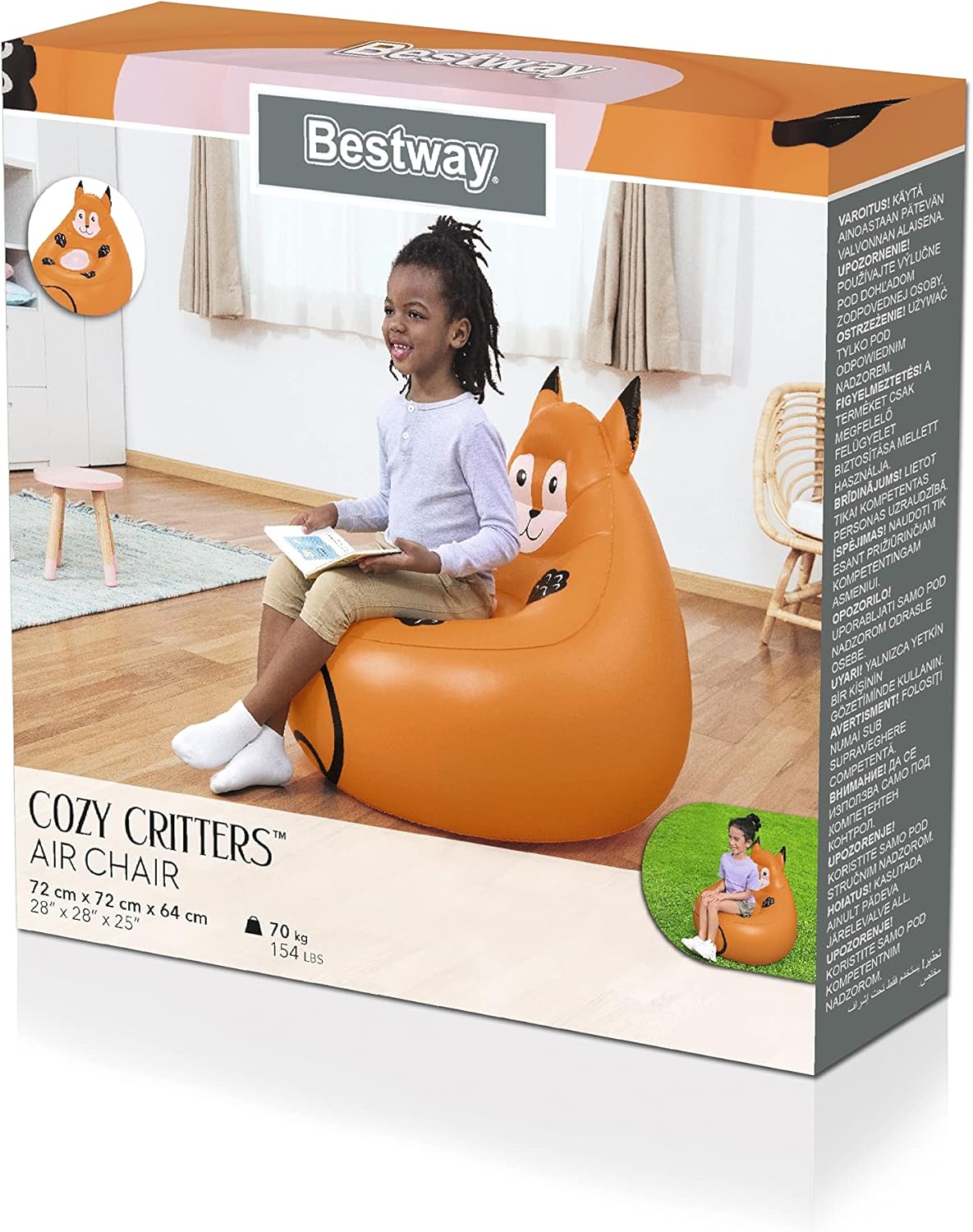 Let your kids snuggle up with one of the happiest animals of the forest with the Bestway® Cozy Critters™ Kids Inflatable Air Chair. Featuring a smiley animal friend print with a cozy spot in the center for a seat, your child can enjoy a fun chair that inflates in minutes and can be enjoyed for hours at home.