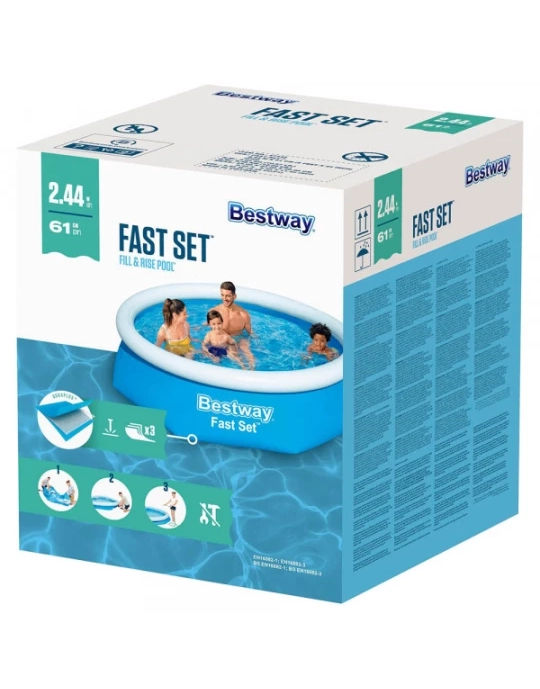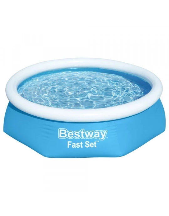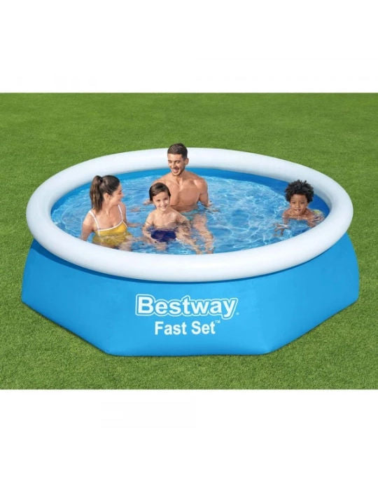 Easy, no-tool setup - ready for water in 10 minutes. Easy, fast and a great size for families, Bestway Fast Set pools offer a convenient option for backyards. Families can choose between a range of designs and pool accessories. These pools are hassle-free and only require a flat surface for set-up. Simply inflate the top ring and it's ready for water within 10 minutes! The Fast Set pool will rise as it's filled with water, making set up quick and easy.