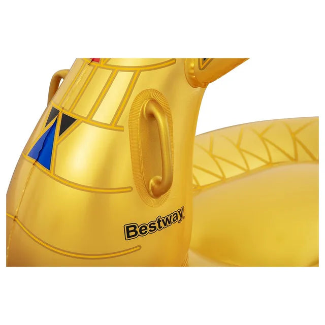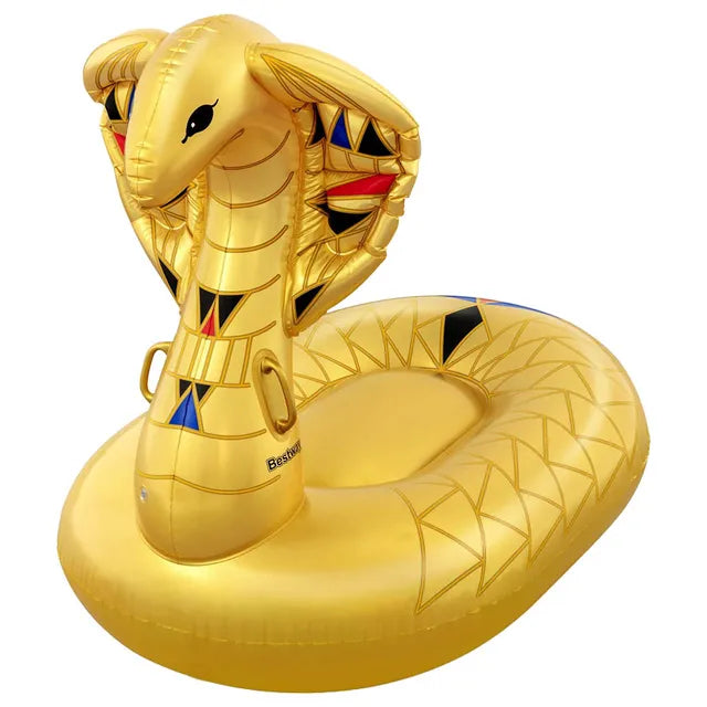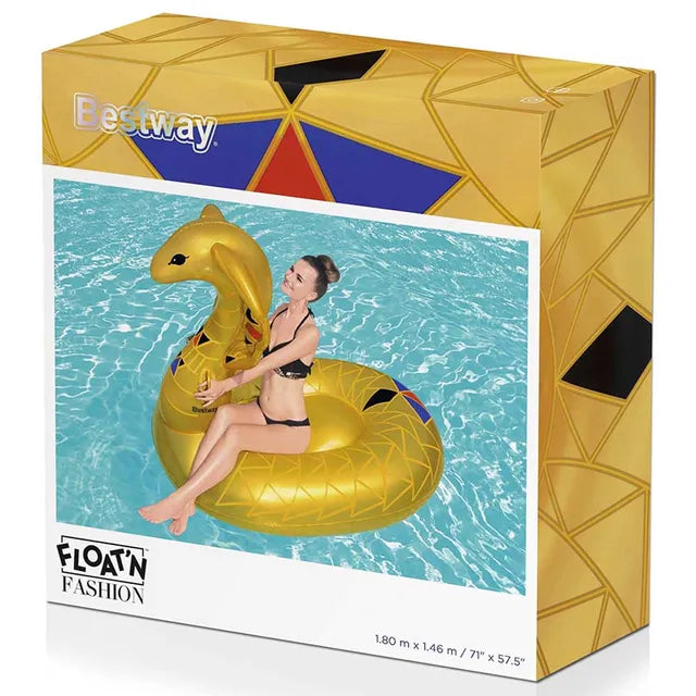 Bring style and flair to the pool party with the Bestway Golden Cobra Ride-On Pool Float! With a realistic gold print, this serpent is sure to make a statement. Heavy-duty handles ensure a safe ride and the neck of the snake can double as a pillow for a comfortable day in the sun!
