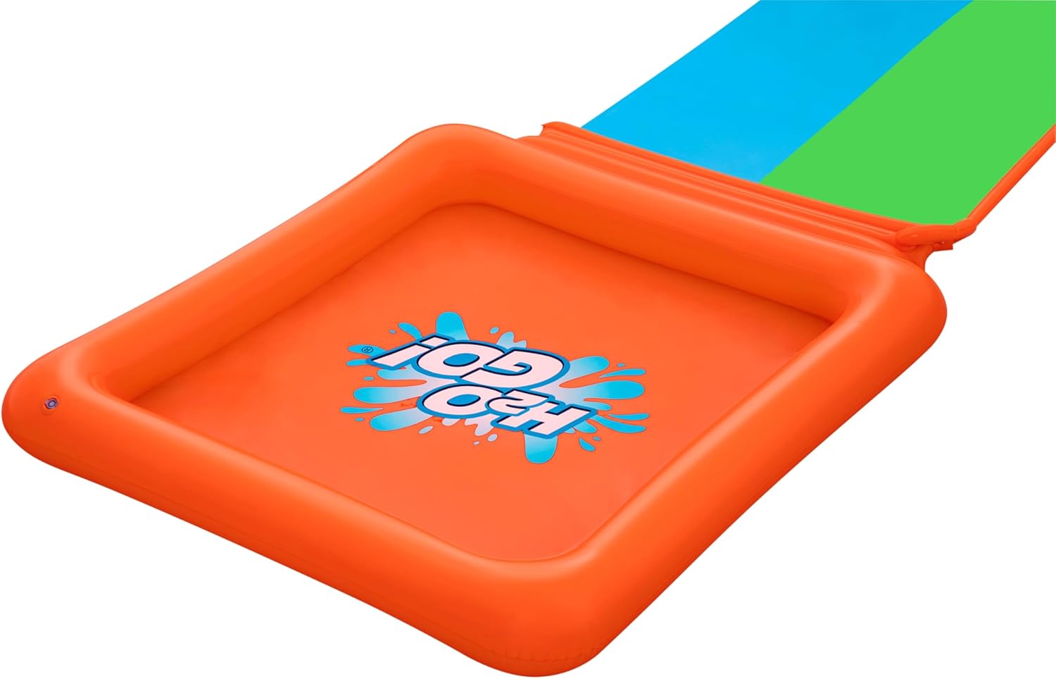 Get ready for a SUPER summer of fun with the H2OGO!® Super Splash Double Slide! With its 2 parallel lanes and extra large drench pool finish, this slide is perfect for racing and entertaining groups. This slide features SplashBoost™ Sprinklers, specially designed to provide targeted water coverage, which keeps the lanes slick to optimize sliding, spraying and splashing. Plus, the Super Splash Double Slide features a ramp at the end of the slide for extra speed and an epic drench pool finish. The setup is super simple just connect it to a garden hose and start sliding! So, line up your friends, race to the finish line and enjoy a high-speed backyard adventure with the H2OGO! Super Splash Double Slide!
