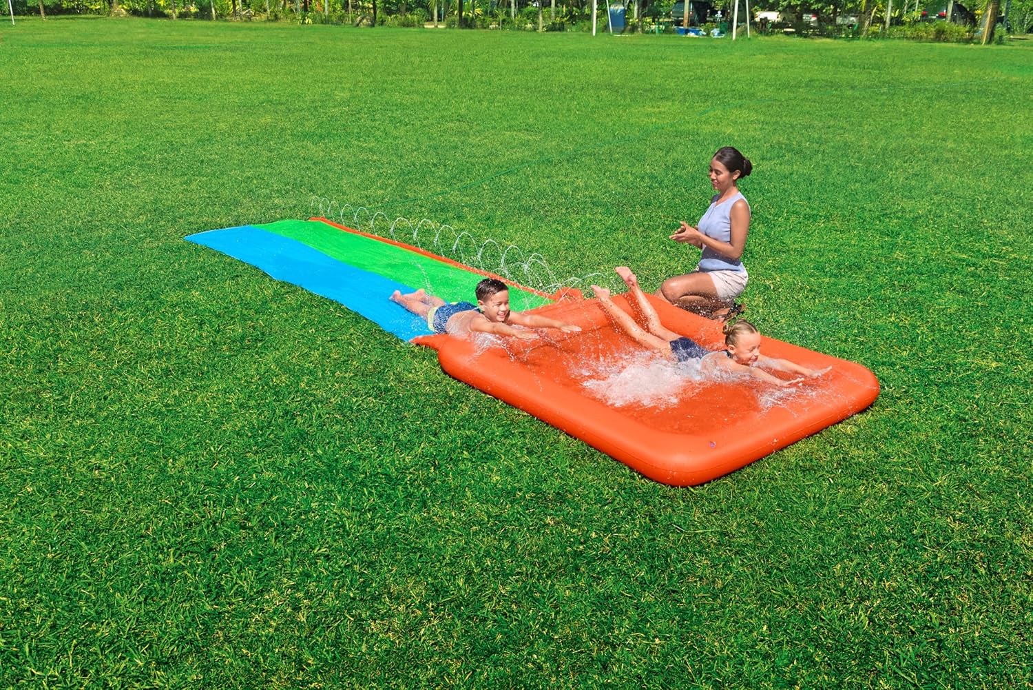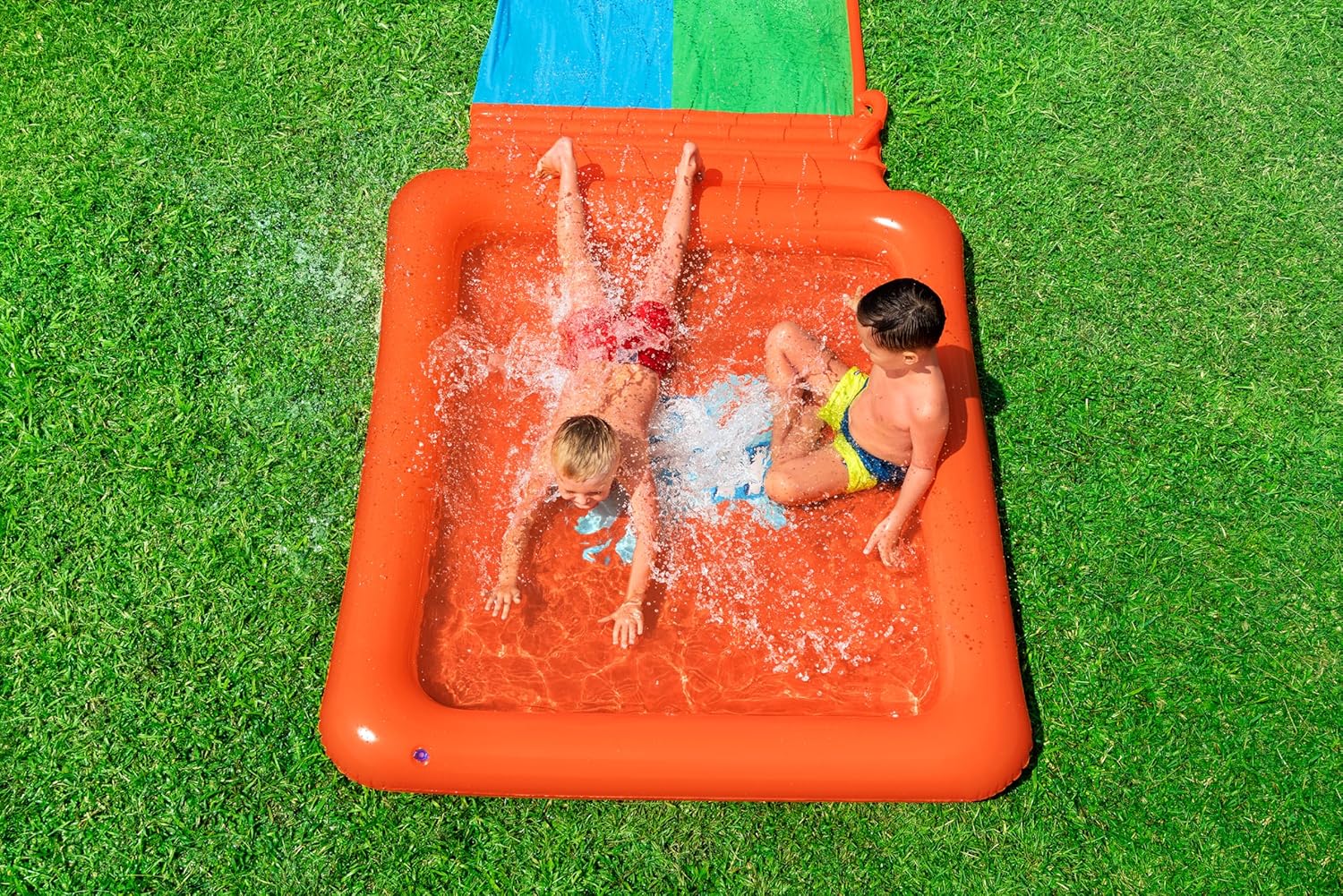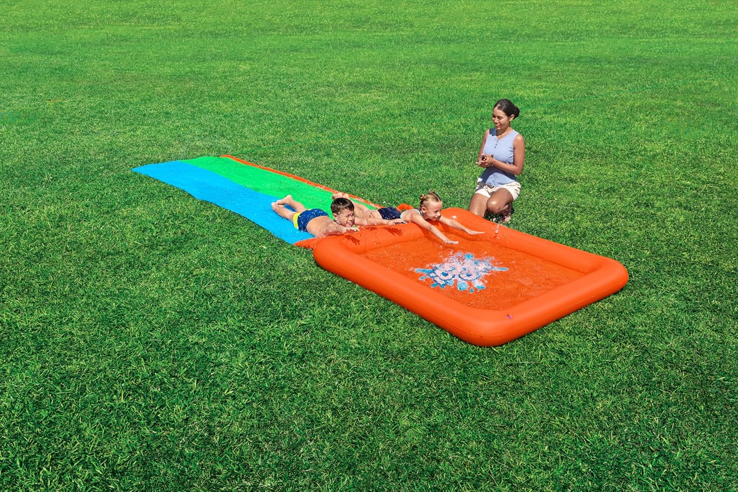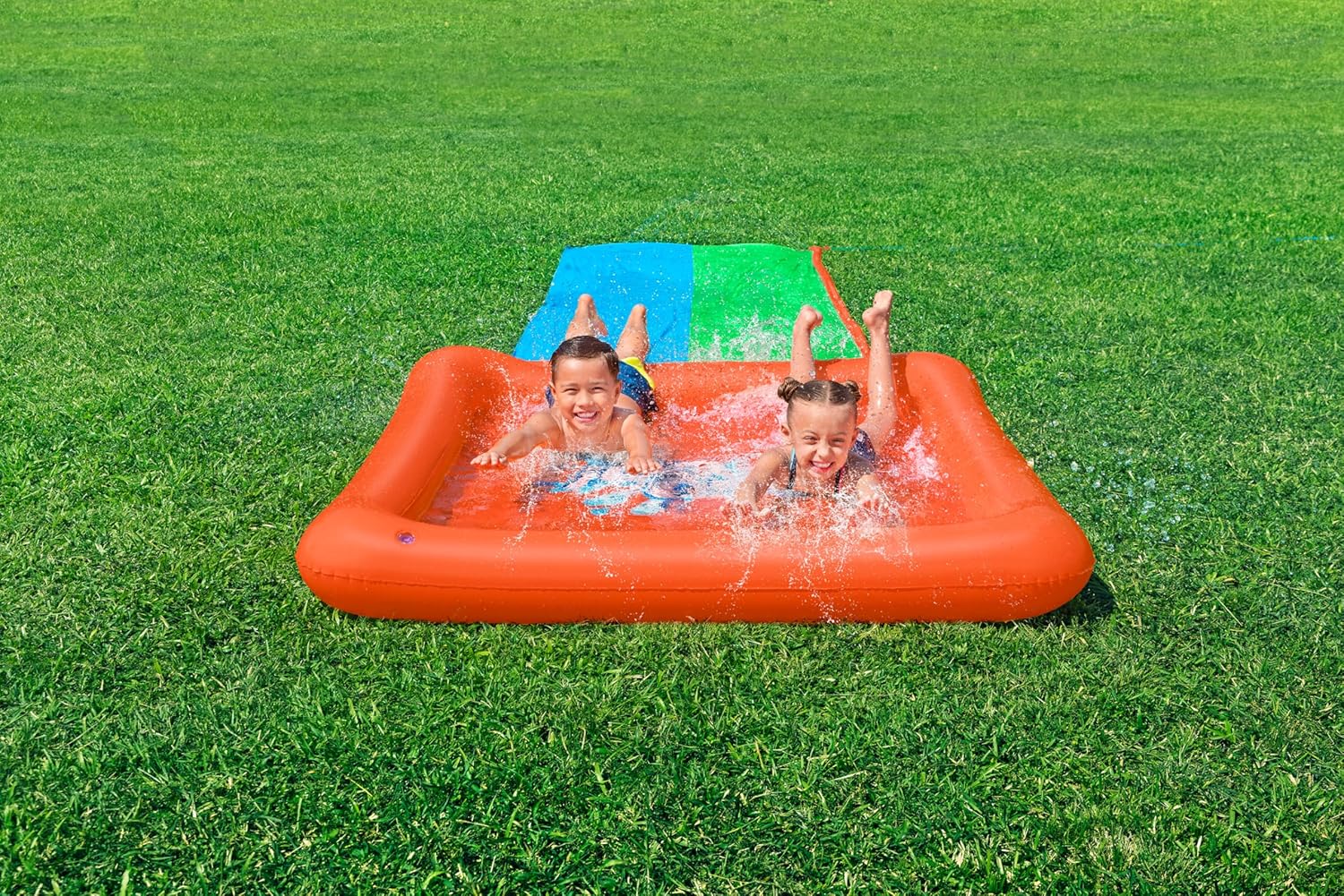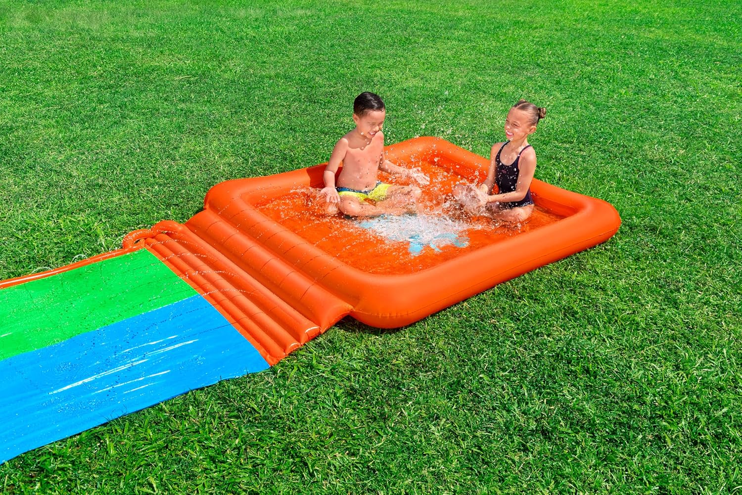 - DOUBLE SLIDE: Prepare for an action-packed summer with the Super Splash Double Slide, featuring 2 parallel lanes and an extra-large drench pool finish, perfect for thrilling races and group entertainment.