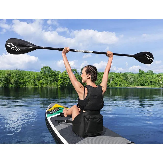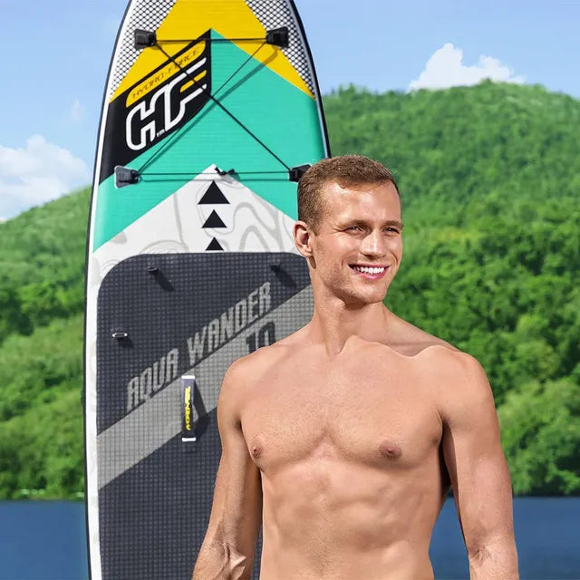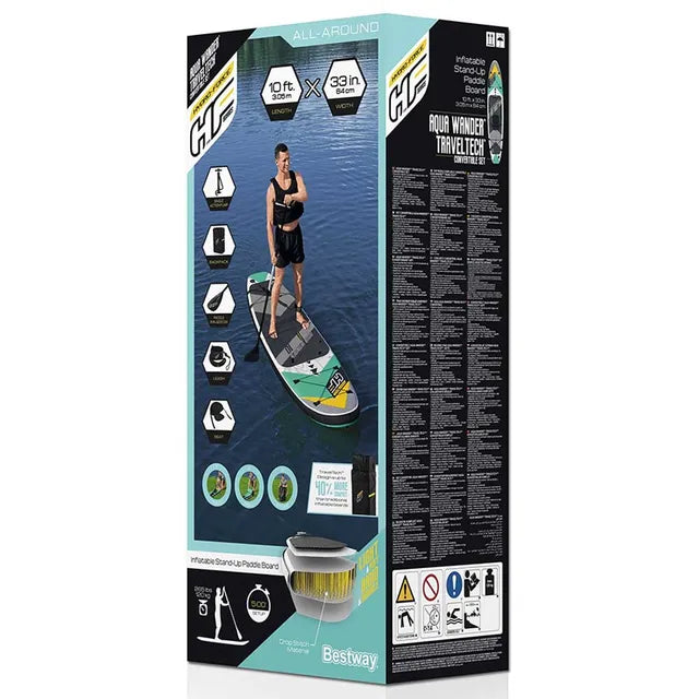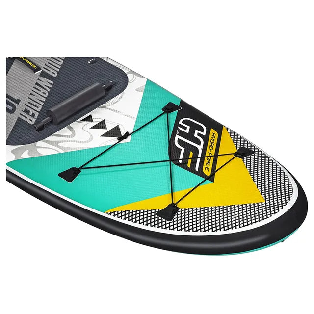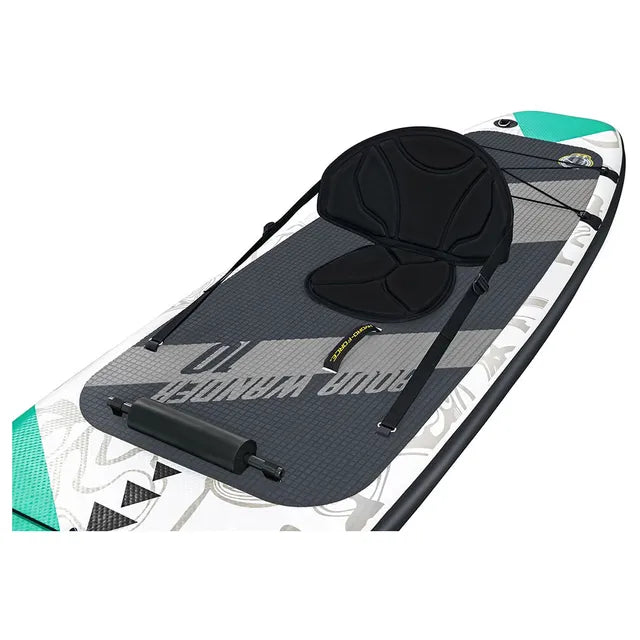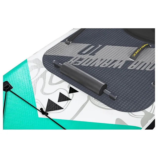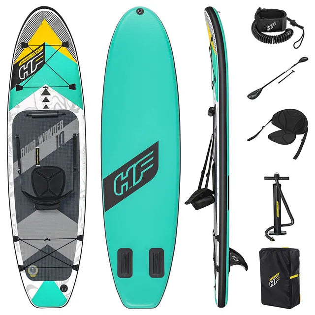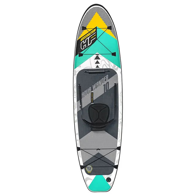 Get out and experience your next water adventure with the Hydro-Force Aqua Wander Travel. Tech Convertible Stand-Up Paddleboard Set. This all-around board is the perfect shape for flat water and small wave riding, and it can be easily converted into a kayak with the included seat and footrest.