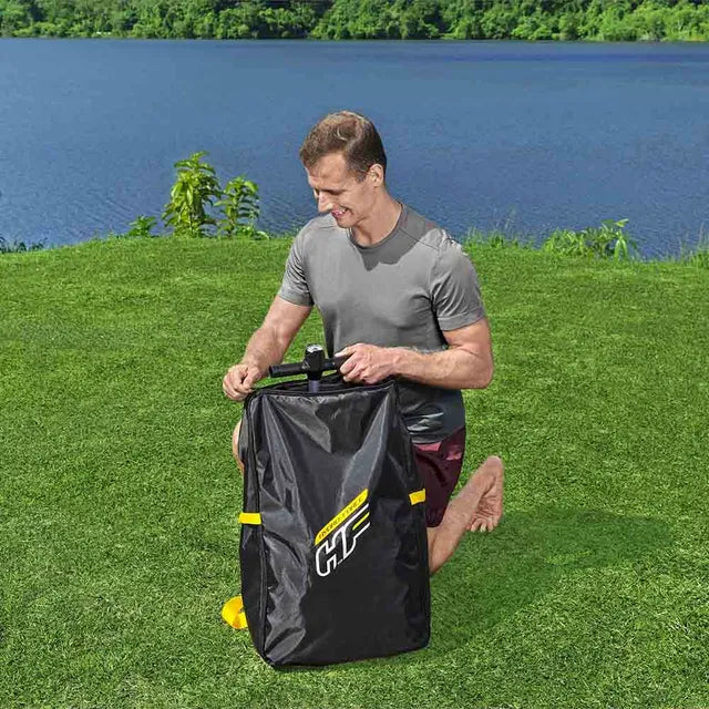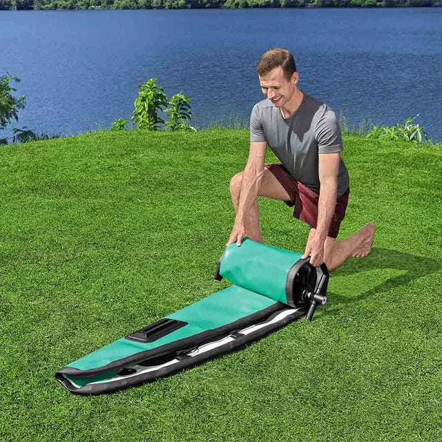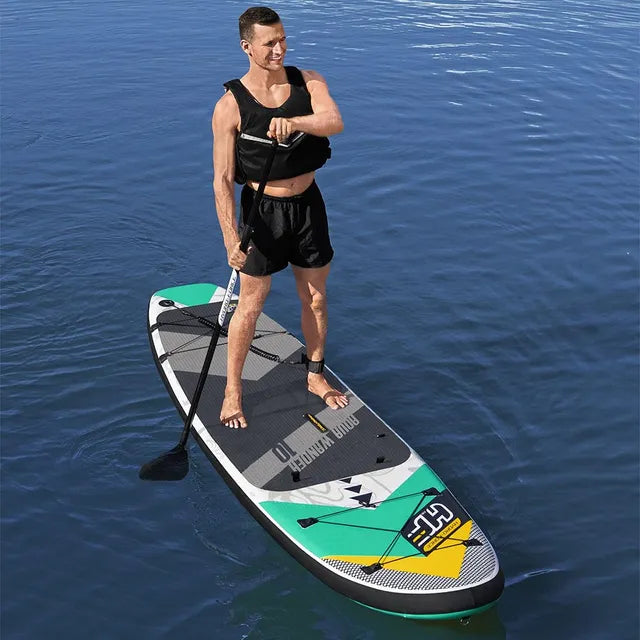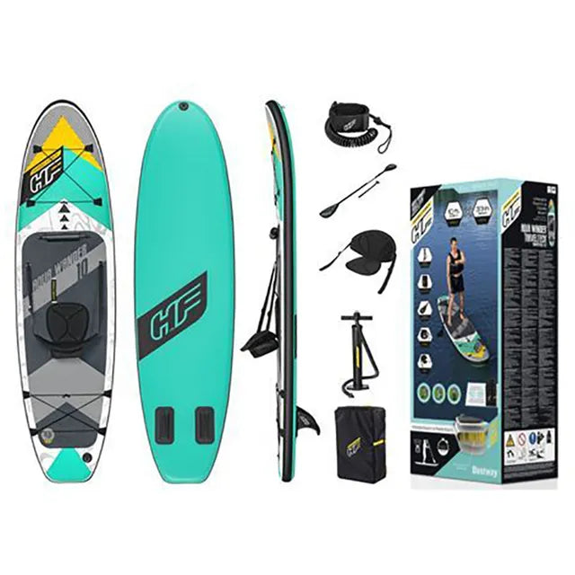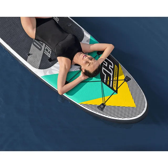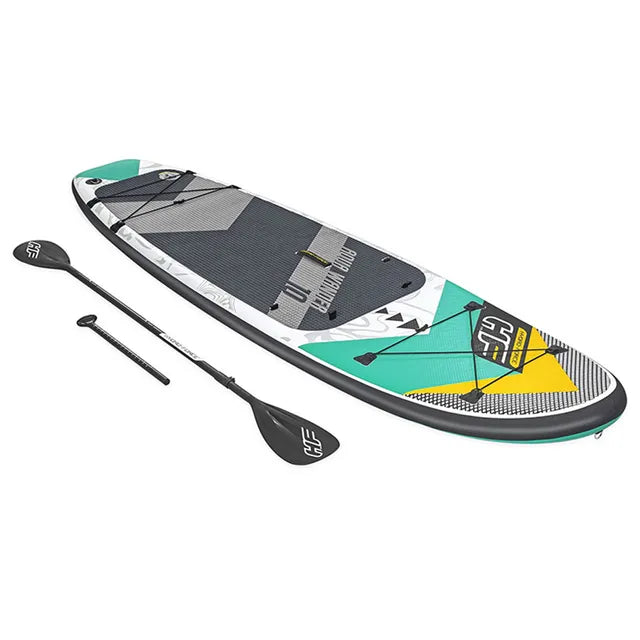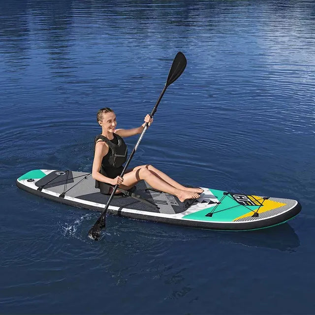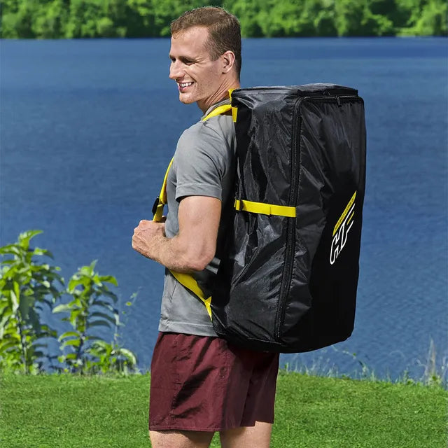 Get out and experience your next water adventure with the Hydro-Force Aqua Wander Travel. Tech Convertible Stand-Up Paddleboard Set. This all-around board is the perfect shape for flat water and small wave riding, and it can be easily converted into a kayak with the included seat and footrest.