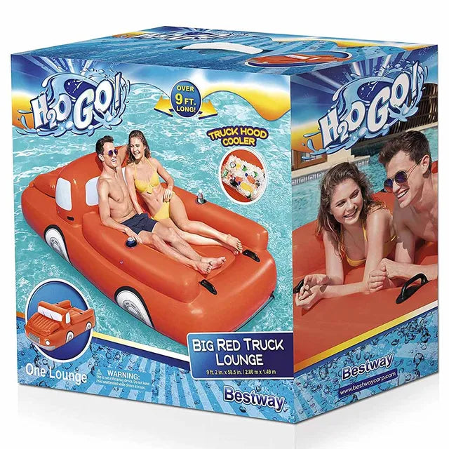 - This large floating lounge is the ideal solution for ultimate summer fun for adults and kids. It can comfortably fit 2-4 people with the truck bed and windshield acting as extra-wide pillow backrests and armrests