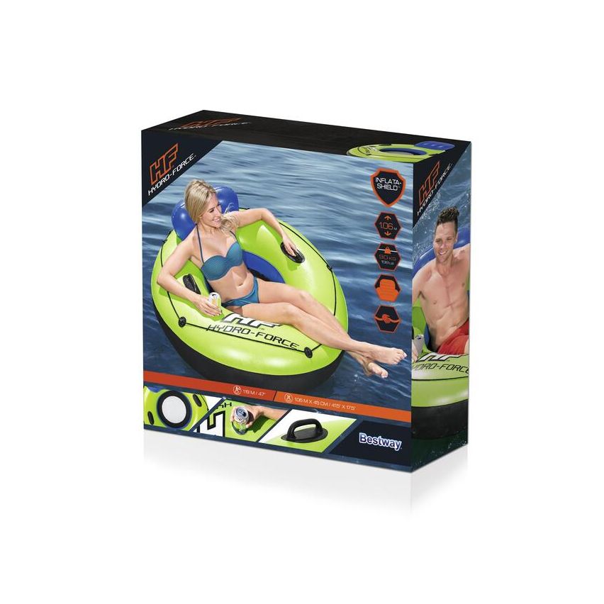 A Hydro-Force Whitecap Rider Tube means relaxing fun in the sun and on the water with friends and family. Enjoy lazily floating down a river or relaxing in a pool with the Whitecap Rider. Constructed with heavy-duty PVC, this durable lounge features a built-in backrest for comfort and support, a cup holder to store your cold drink, and a woven mesh seat to keep you cool.