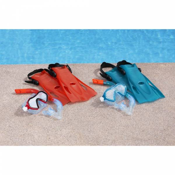 The Hydro-Swim Firefish Snorkel Set has everything you need for exploring the wonders of underwater life. The full set includes a snorkel, mask and fins - all constructed with non-latex based materials. UV-Protected Lens: The Firefish mask features a wide-view lens made with sturdy, impact-resistant polycarbonate material. The lens is coated with a UV-protective layer for eye protection in the sun.