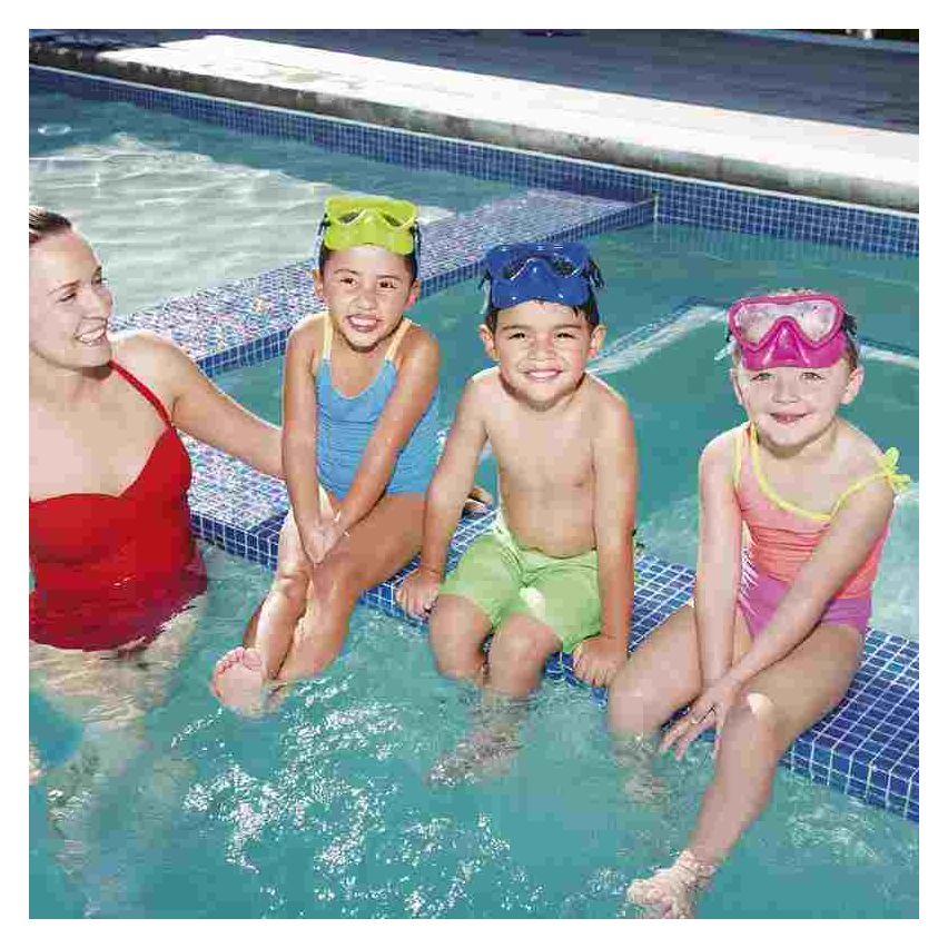 If your child loves to spend days dabbling in the sun, the Hydro-Swim Guppy mask is made for them! The large polycarbonate lenses allow your child to see whats going on around them, even underwater. The lenses also have anti-UV treatment to protect your child's eyes when they are having fun in the sun. Parents and kids will love this brightly coloured mask because of its double bevel skirt which adjusts perfectly to prevent water from entering the mask or nose. In addition, it has an adjustable strap that you can tighten or loosen to fit your child's head!