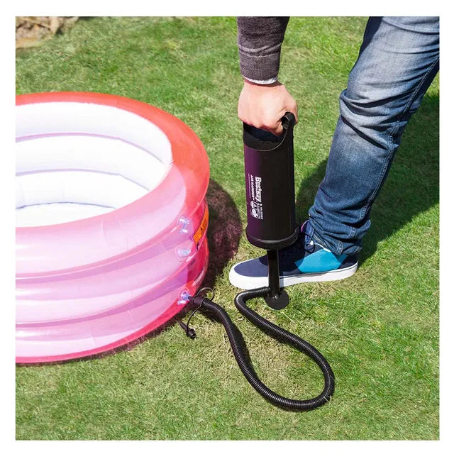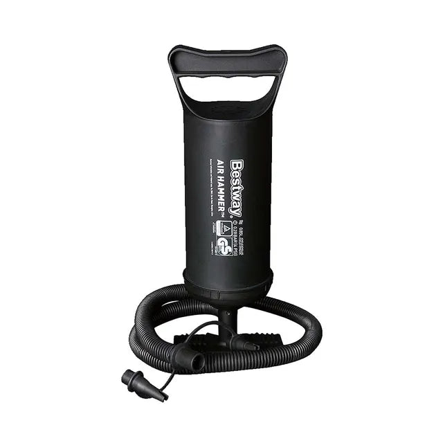 Fill all your inflatable air beds, toys, rafts and more in no time The Bestway air hammer inflation pump inflates / deflates on up and down stroke, with large air chamber for rapid inflation/deflation, flexible hose and 3 valve adapters to fit nearly every inflation valve.