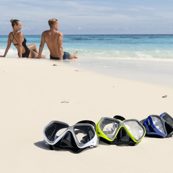 The Bestway Dominator Pro Mask is ready for a fun summer adventure! Great for swimming in the pool or diving through the ocean, this mask is built for adults. The Dominator Pro Mask features clear, high-definition tempered glass dual lenses. The thick glass material is both durable and scratch-resistant, giving you the perfect underwater mask for many summers to come. This premium construction is great for deeper dives and more competitive wear.