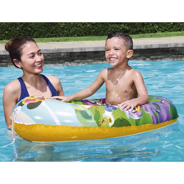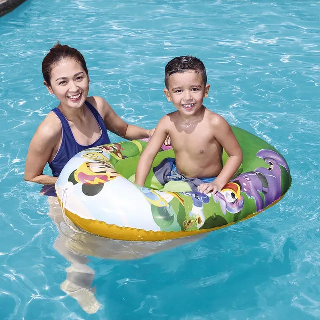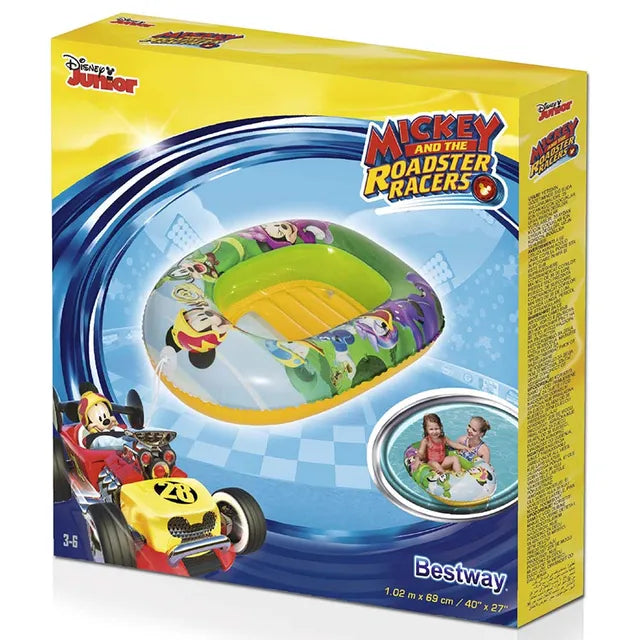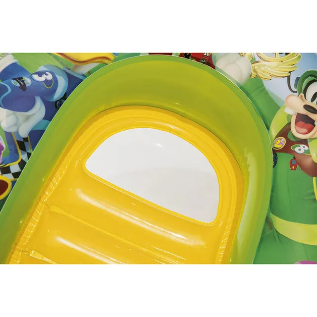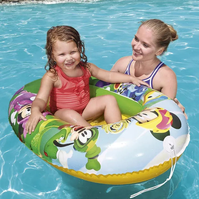 Oh Toodles Here comes big time fun with the Mickey Mouse Clubhouse™ Kiddie Raft by Bestway®. The raft features an inflatable bottom for extra comfort. A tow rope with a built-in grommet allows the raft to be pulled around in the water while kids can marvel at the sights below in the see-through window. With brightly colored graphics of Mickey and his Clubhouse crew, kids will take great delight in their Mickey Mouse Clubhouse™ Kiddie Raft at the beach or the pool. Splashing in the sun has never been more fun!