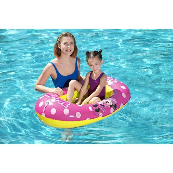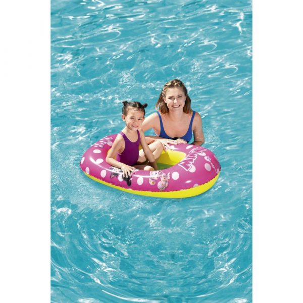 Kids can lay in the pool in safety, comfort and style with the Disney Minnie Inflatable Beach Boat! Kids will love the eye-catching Minnie Mouse graphic printing on this boat. For extra comfort, the bottom of this boat inflates for a more cushioned sitting area for kids. For parents, there is an attached tow rope so that you can always have a hold of your little one. Bring the magic of Disney home with the Minnie Inflatable Beach Boat!
