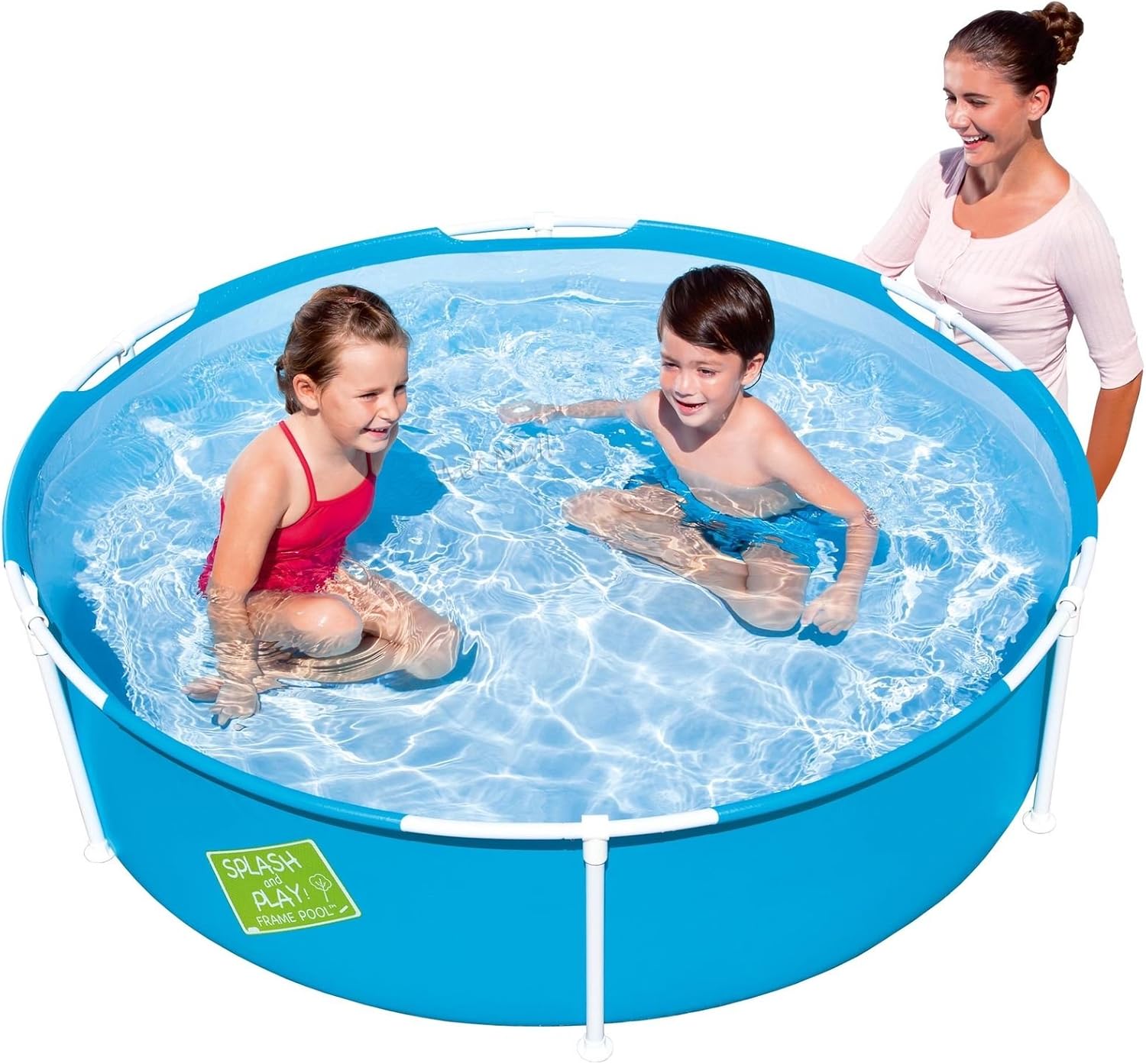 Bestway My First Frame Pool Above Ground Pool. Designed to get kids moving, grooving and out of the house, My First Frame Pool is quality-tested and puts the focus back on fun! This pool is great for kids to splash and play in. Available in 1 bright color, this pool is easy to set up and is constructed of rust-resistant metal frames. The pool is easy to take down for storage. Splashing in the sun has never been more fun than with My First Frame Pool!