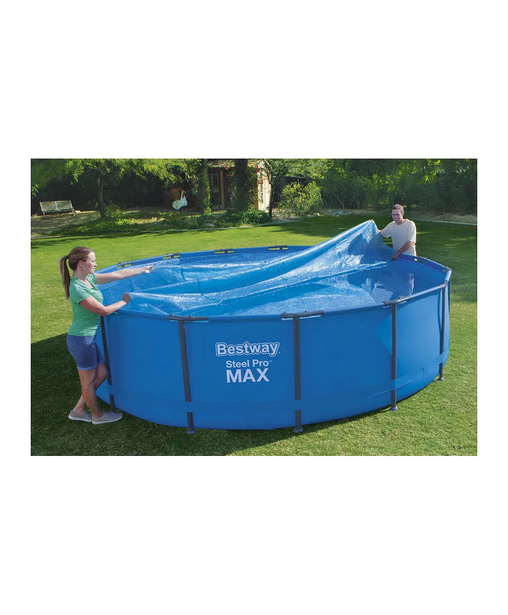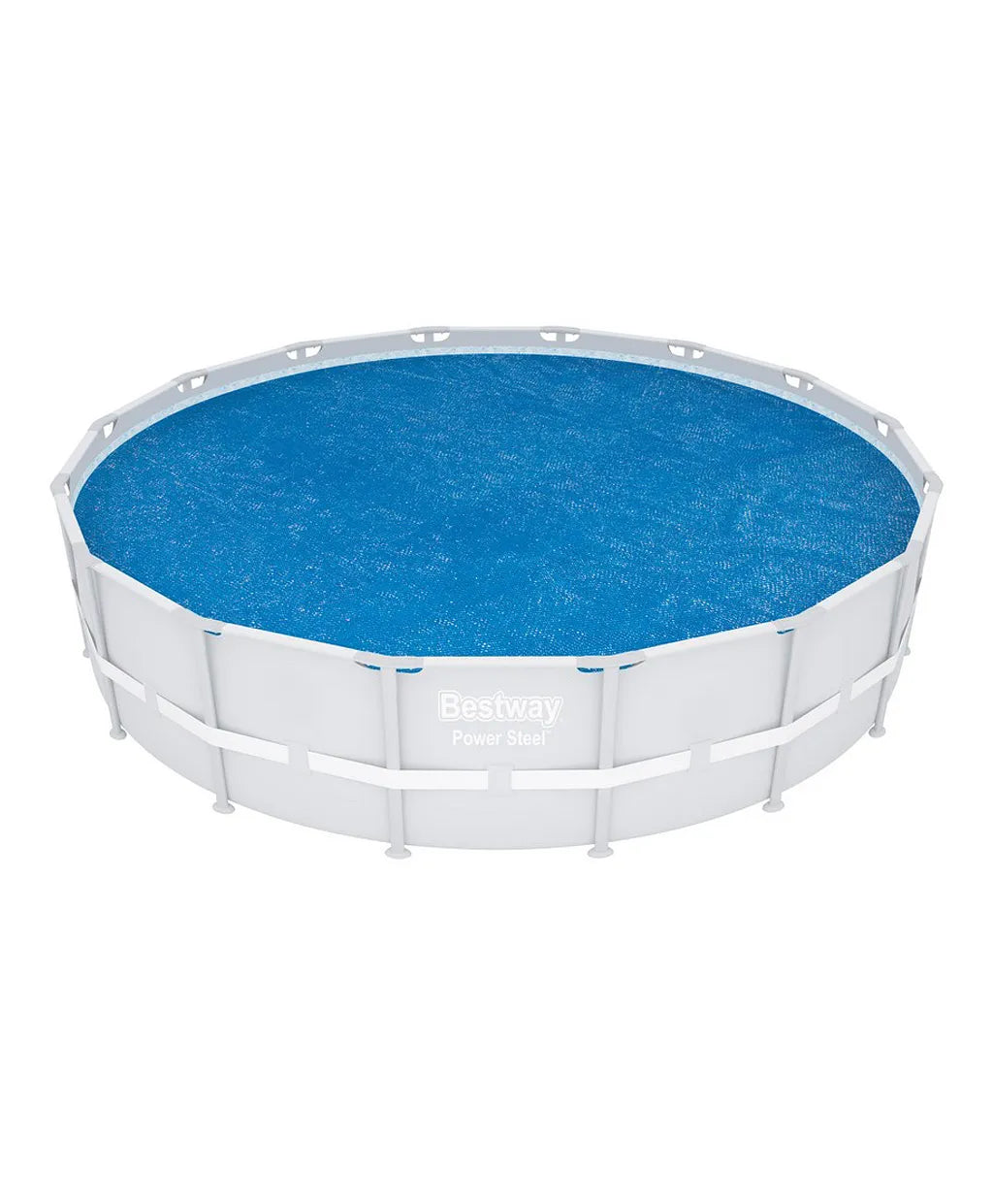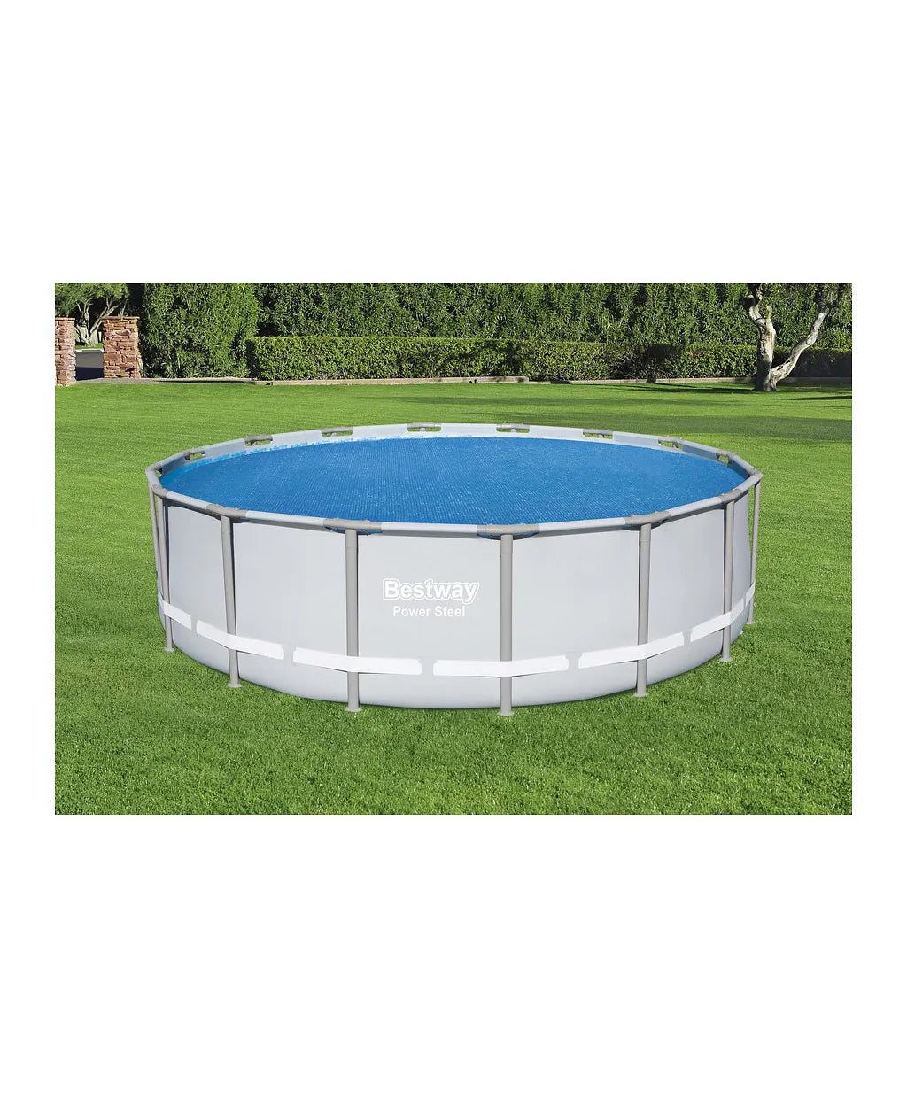 Keep water and heat in and debris, leaves, and trash out of your pool with this Flowclear Solar Pool Cover. Above ground swimming solar pool covers create a greenhouse effect in your pool. Solar covers also prevent water evaporation caused by dry winds, or free-chlorine loss caused by UV rays. , , These covers are designed to keep water and heat in, but debris out. Extend your swimming season with a Flowclear Solar Pool Cover. It fits 18'/5.49m diameter Fast Set pools