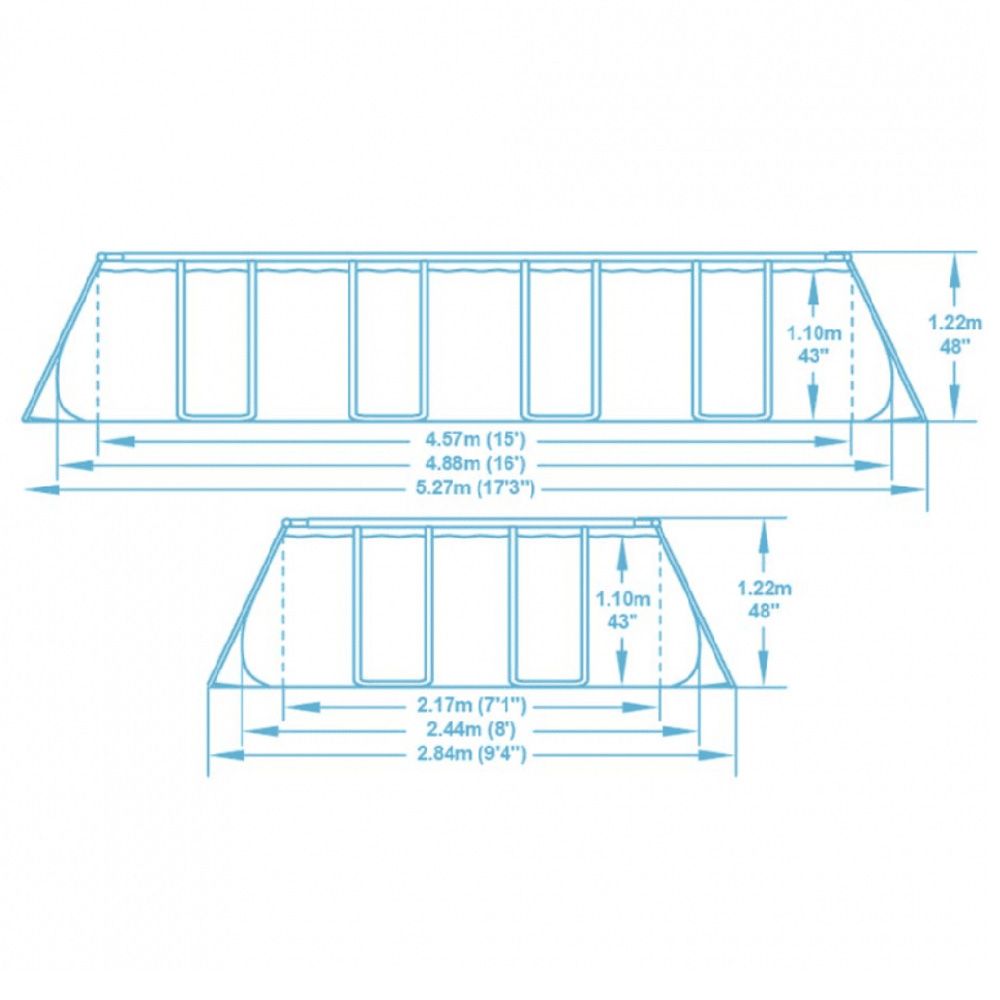 With a Bestway pool you can immerse yourself and relax knowing you can count on a quality product for the entire summer season.A Bestway summer is made of sun, fun, family and friends. Happy days that will remain forever in your memories, together with the joyful smile of the children who dive into the pool and the moments of relaxation spent together with your friends, in and out of the water. Wear your costume and get ready for an exciting season of fun with the extraordinary products of the Bestway summer range!Power Steel PoolsThe sturdiness and safety of a frame made of rigid, oval-shaped steel tubes and a simple assembly process, with only a few tools, make the Bestway Power Steel frame pool the smartest choice for families.Bestway above-ground pool model 56670:Rustproof metal frameInternal 3-layer walls (PVC - Polyester - PVC)Valves for easy emptyingDimensions 488x244x122 hCapacity at 90% 11.532 Liters