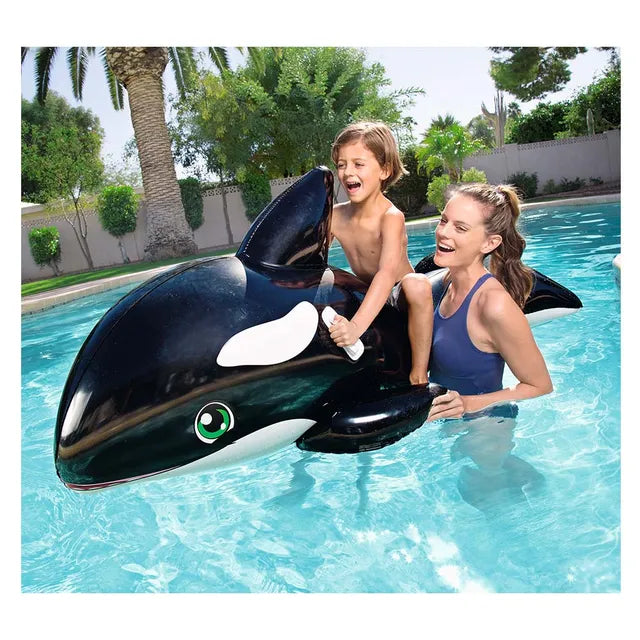 Be a champ on the water with the Bestway whale rider. This rider is crafted from pre-tested vinyl that makes it a durable option. This rider gives more independence and confidence to your child in water. The set includes heavy-duty repair patch. This unique and cute design will be the highlight of your backyard this summer. This rider offers comfortable and easy floating.
