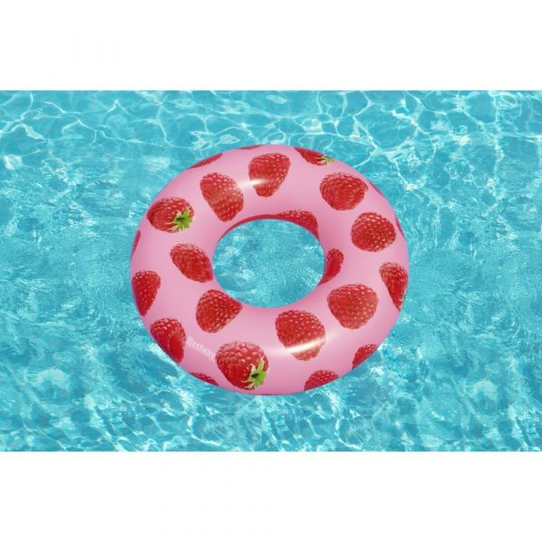 Let the sweet summer smell of the Bestway Scentsational Raspberry Swim Tube whisk you away to your happy place! This float is infused with a tasty and fruity raspberry scent, and the mouth-watering aroma is sweet and cool, without being too powerful or overwhelming. The Scentsational Raspberry Swim Tube will have everybody talking - and sniffing - this summer! Plus, the cute, trendy raspberry print is perfect for a summer pool party. People won't be able to take their eyes (or noses) off of it!