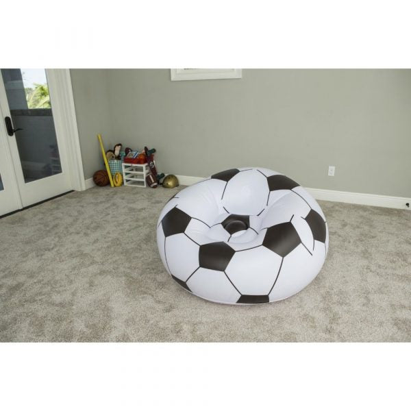 The up, in & over beanless soccer ball chair by best way is perfect for boys and girls who love soccer or sports in general. The durable vinyl construction stands up to the wear and tear of youngsters. Easy inflation makes it possible to set up the seat quickly. Perfect addition for a child’s room or game room.