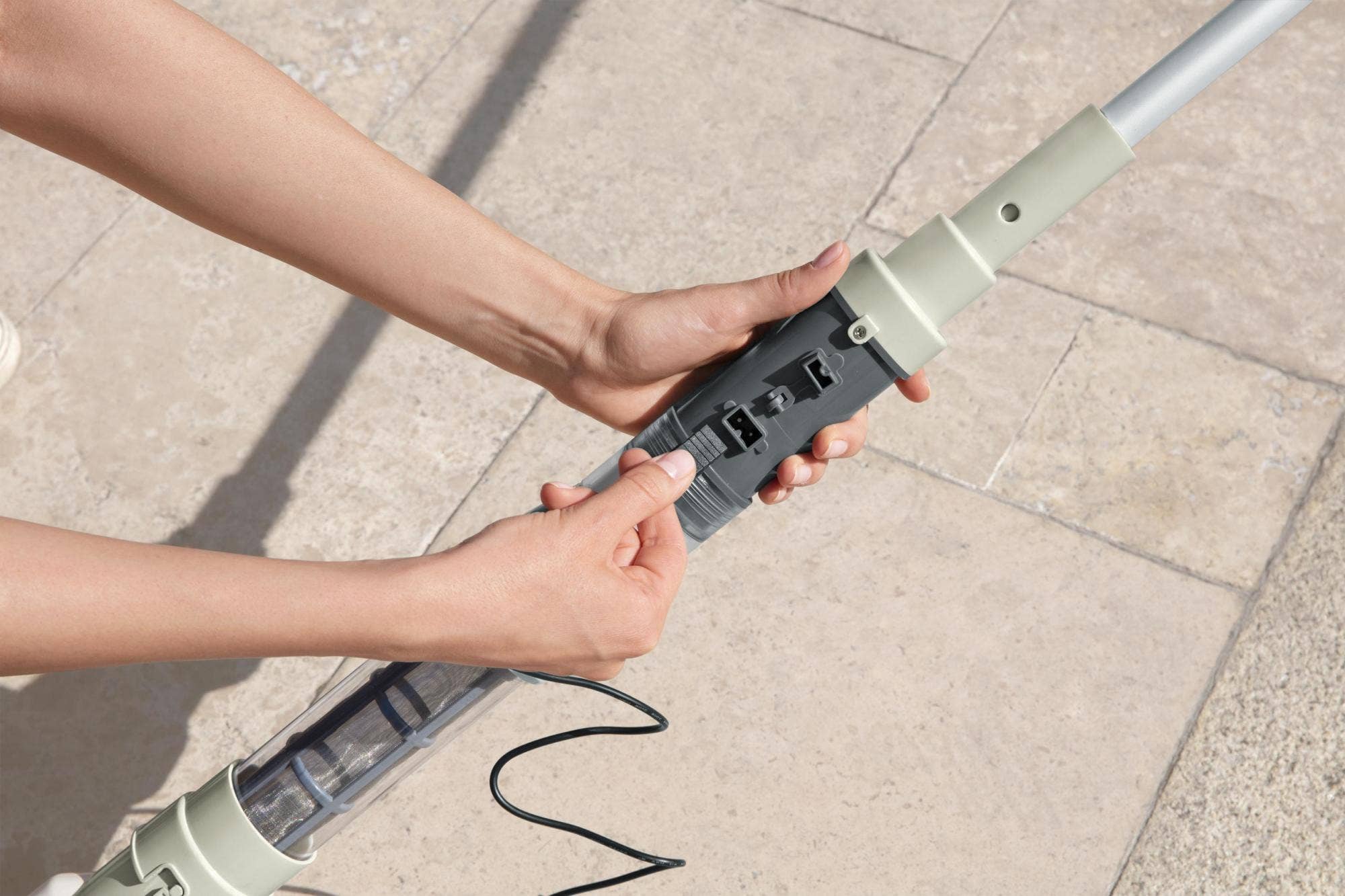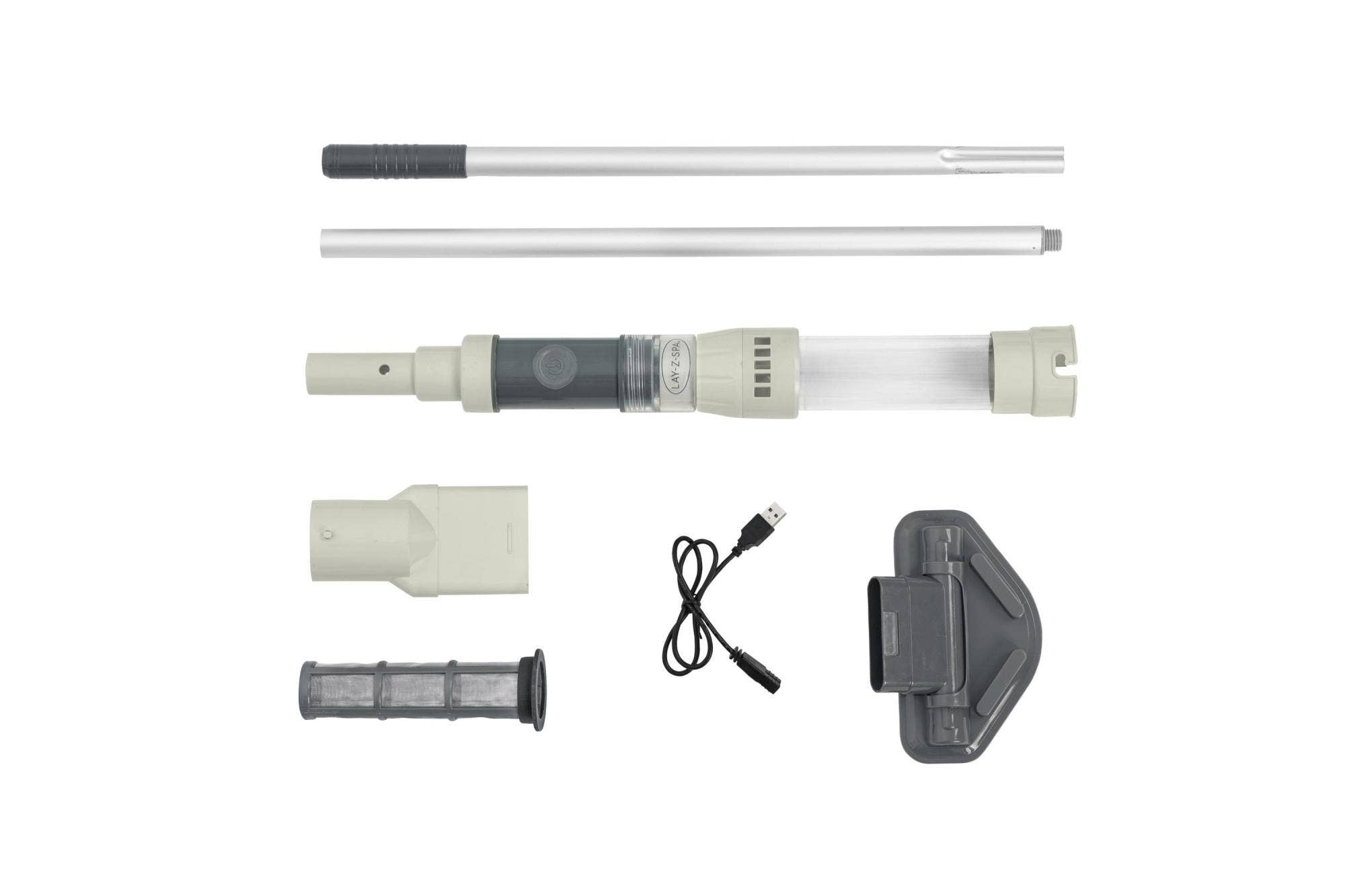 Keep your spa or small pool clean and clear with the Lay-Z-Spa Rechargeable Underwater Vacuum. The cordless vacuum cleaner comes with a USB charging cable, which will give the battery enough juice to last for 30 minutes. The pole on the pool cleaner reaches to 5 feet, making the bottom of the swimming pool easy to reach and clean. Clean off mildew, slime and debris with all the ease of vacuuming a carpet clean underwater. The debris is collected in an easy-to-empty stainless steel filter, which