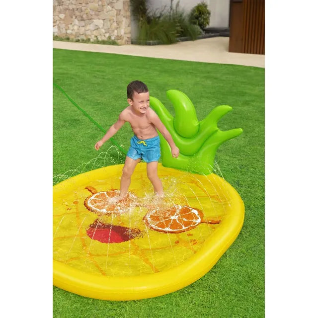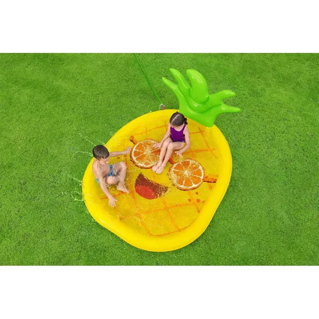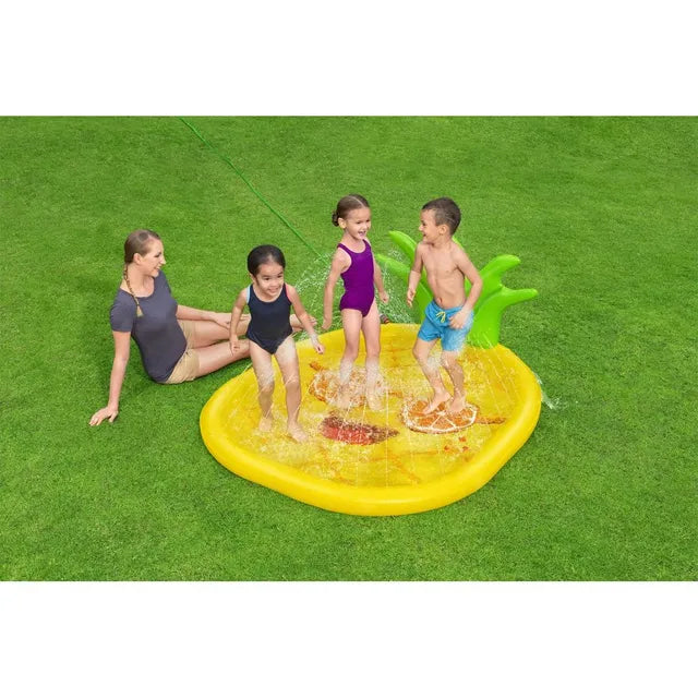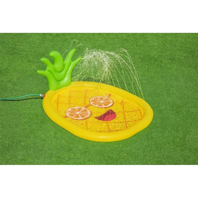 We've got a sweet way for your kids to soak up all the fun and sunshine! Our Bestway Sunny Pineapple Splash Pad attaches to a garden hose for quick and easy assembly, so it's ready for play in minutes. With sprinklers aimed toward the center of the pad creating a gentle fountain effect, the Sunny Pineapple Splash Pad is the perfect introduction to water-play for toddlers not yet ready for the baby pool.