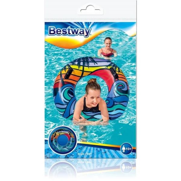Float away on your own little oasis with the Bestway® CoastalCastaway™ Swim Tube. Designed for swimmers ages 10 and up, the colorful and artistic seaside design will make you (or your child) feel like you’re on vacation without even leaving the backyard. Or if you want to venture seaside, the heavy-duty handles make getting in and out of the tube effortless. So, if you find yourself adrift, you can easily paddle your way back to shore. Wherever your water travels take you, the Bestway CoastalCastaway Swim Tube is easy to inflate, deflate, and store making the fun in the sun lasts for seasons to come.