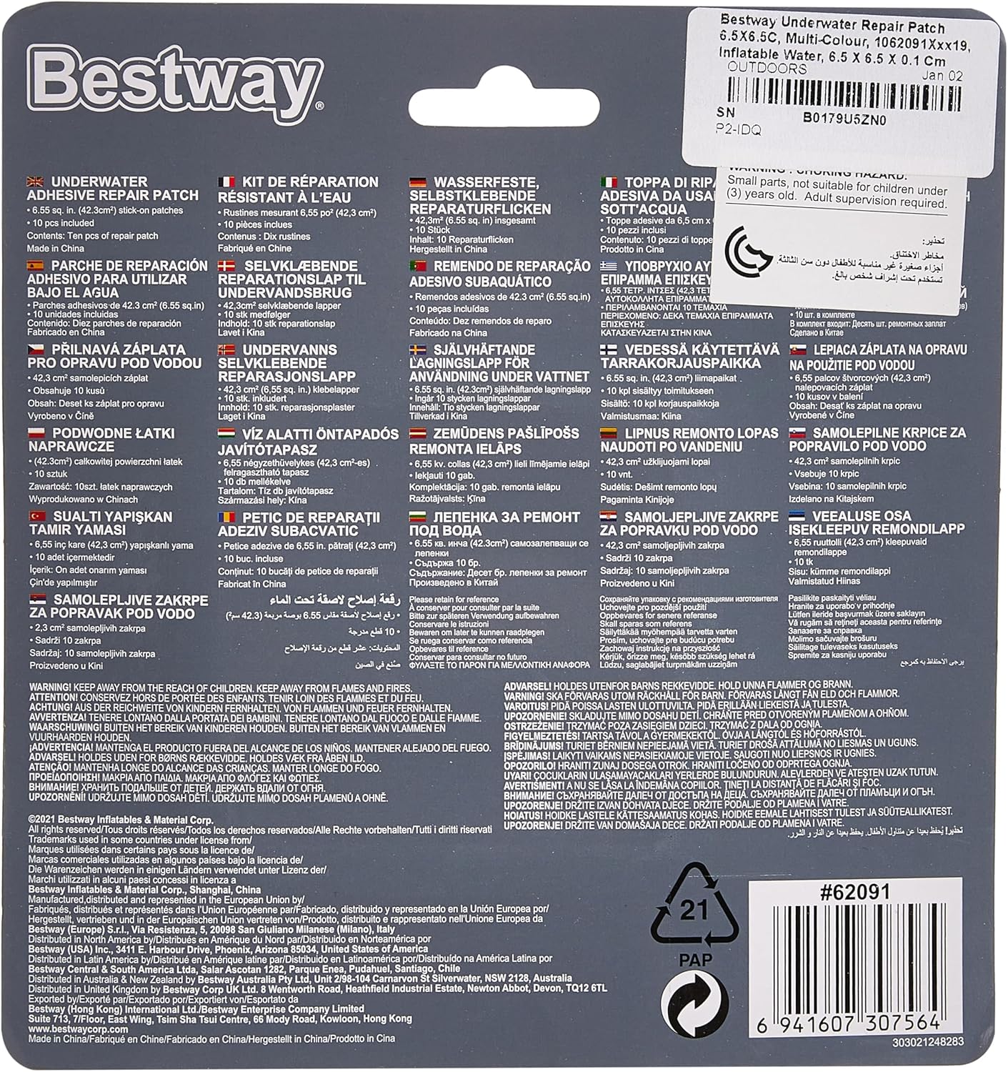 Bestway repair patches and kits ensure that no consumer has to watch items deflate because of pesky punctures or accidental slits. Keep the fun going with repair patches that work universally for all inflatable products. Every consumer should have an instant solution when they encounter a leaky item. Easy to adhere, these repair patches are able to save the day.